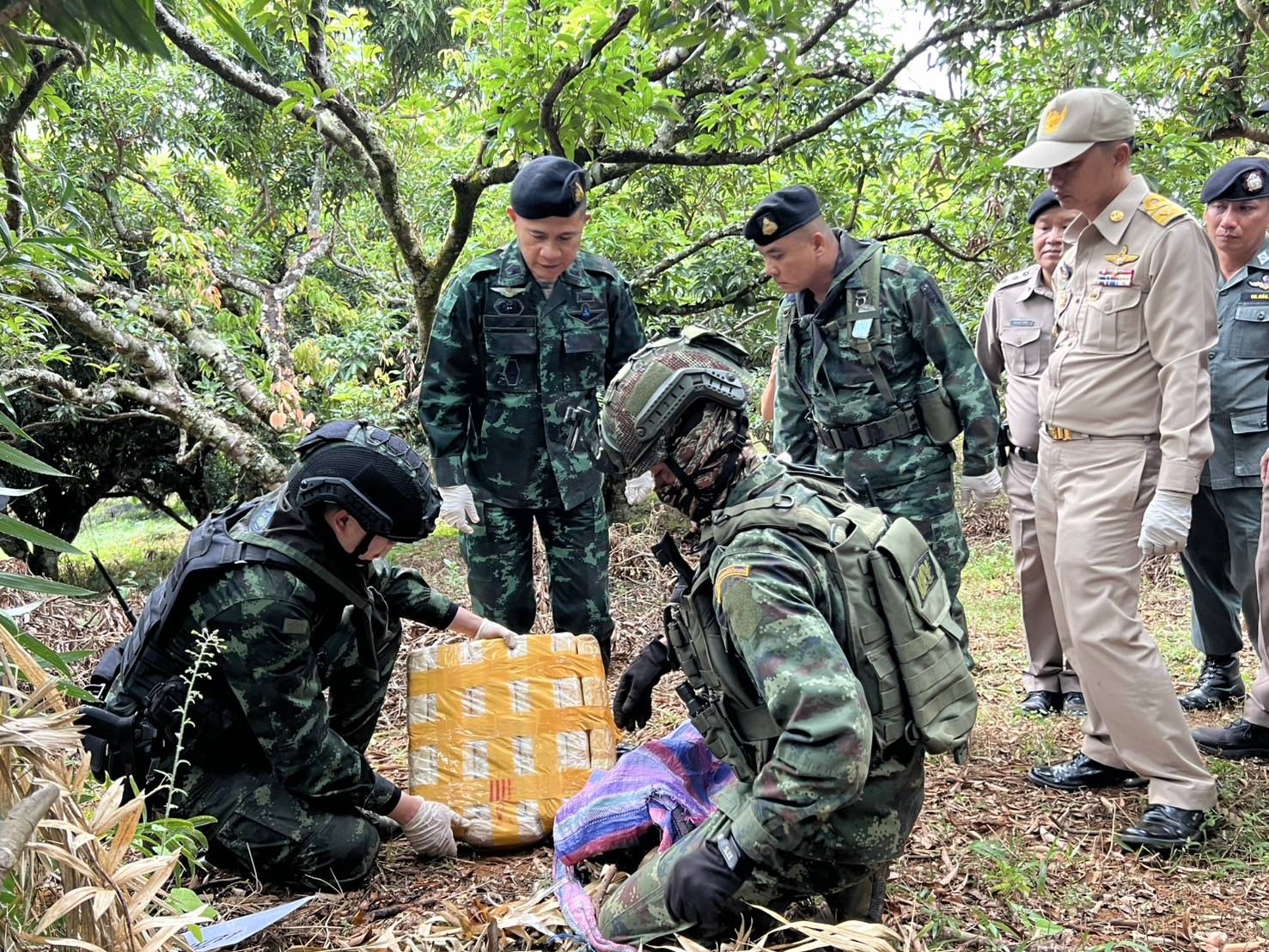 จากกรณี เมื่อวันที่ 24 กุมภาพันธ์ 2568 เวลา 04.21 น. กกล.ผาเมือง โดย กองร้อยทหารม้าที่ 4 หน่วยเฉพาะกิจไชยานุภาพ ได้รับแจ้งจากแหล่งข่าวว่าจะมีการลำเลียงยาเสพติด หน่วยจึงจัดกำลังจำนวน 2 ชป. ทำลาดตระเวนเฝ้าตรวจเพื่อป้องกันและสกัดกั้นการกระทำผิดตาม พ.ร.บ.ประมวลกฎหมายยาเสพติด บริเวณ เส้นทางช่องทางเขาหัวโล้น ต.ม่อนปิ่น อ.ฝาง จว.ช.ม. ตรวจพบกลุ่มบุคคลต้องสงสัยสะพายเป้ ประมาณ 6-7 คน จึงได้แสดงตัว เพื่อขอทำการตรวจค้น แต่กลุ่มบุคคลดังกล่าวได้ใช้อาวุธปืน ไม่ทราบชนิดและขนาดยิงใส่ฝ่ายเรา ทำให้เกิดการปะทะกันประมาณ 10 นาที หน่วยจึงได้จัดกำลังพล จำนวน 2 ชุดปฏิบัติการ เข้าควบคุมและตรวจสอบพื้นที่ พบกระสอบดัดแปลงเป็นเป้สะพายหลัง จำนวน 6 กระสอบ ภายในบรรจุยาเสพติดให้โทษประเภท 1 (ยาบ้า) รวมทั้งสิ้น 728,000 เม็ด และเฮโรอีนแท่ง น้ำหนักประมาณ 3.6 กิโลกรัม