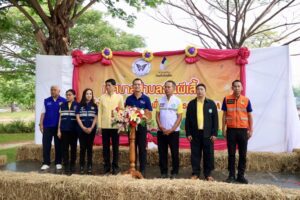 วันนี้ (10 เม.ย. 68) ที่หมู่บ้านศิวลัย อ.เมืองเชียงใหม่ จ.เชียงใหม่ นายนิรัตน์ พงษ์สิทธิถาวร ผู้ว่าราชการจังหวัดเชียงใหม่ มอบหมายให้ นายศิวกร บัวป้อง รองผู้ว่าราชการจังหวัดเชียงใหม่ เป็นประธานเปิดโครงการ “ท้องถิ่นฮ่วมใจ๋ เอามื้อ เอาจัย เพื่อเจียงใหม่บ้านเฮา” ครั้งที่ 11 ที่สำนักงานส่งเสริมการปกครองท้องถิ่นจังหวัดเชียงใหม่ ร่วมกับ เทศบาลตำบลสันผีเสื้อ ร่วมกันจัดขึ้นเพื่อป้องกันและแก้ไข รวมทั้งลดผลกระทบจากปัญหาไฟป่า หมอกควัน และฝุ่นละอองในเขตชุมชน เขตเมือง ส่งเสริมให้ใช้กลไกอาสาสมัครท้องถิ่นรักษ์โลก เข้ามามีส่วนร่วมในการป้องกันและแก้ไขปัญหาไฟป่า หมอกควัน และฝุ่นละออง และส่งเสริมให้มีการบูรณาการเพื่อแก้ไขปัญหาไฟป่า หมอกควัน และฝุ่นละอองในพื้นที่ โดยมี ผู้แทนจากหน่วยงานราชการระดับจังหวัด เจ้าหน้าที่เทศบาลตำบลสันผีเสื้อ ภาคีเครือข่าย เข้าร่วมโครงการ