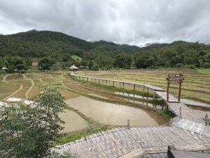 เริ่มต้นจากการเดินทางจากอำเภอแม่แตง จังหวัดเชียงใหม่สู่เส้นทาง อำเภอปายจังหวัดแม่ฮ่องสอน ทุกท่านจะได้ชมธรรมชาติผ่านพาโนรามา มุมสูงของภูเขาเขียวขจีในฤดูฝนและบ้านกลางหุบเขา ที่มีแปลงนาขั้นบันไดของจุดชมวิวบ้านลุกข้าวหลามในพื้นที่ชุมชนชาติพันธุ์ไทใหญ่ – ไทลื้อ ที่ยังคงรักษาวิถีชีวิตดั้งเดิมที่เคยทำข้าวหลามจากเตาไม้ไผ่เพื่อต้อนรับแขกที่จะมาเยือนหรือตามเทศกาลต่างๆ ที่นี่นักท่องเที่ยวสามารถถ่ายภาพชุดพื้นเมือง เดินป่าระยะสั้นๆเพื่อชมธรรมชาติรอบุดชมวิวได้อีกด้วย