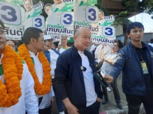 พล.ต.อ.ประจวบ วงศ์สุข ผู้สนับสนุนการเลือกตั้งพรรคกล้าธรรม กล่าวว่าการเลือกตั้งครั้งนี้เป็นวาระสำคัญต่อประเทศชาติ สิทธิของเราในการใช้ครั้งนี้มีความหมาย อยากให้พี่น้องประชาชนได้ทบทวนว่าสิ่งที่ผ่านมาการใช้สิทธิเลือกตั้ง ท่านเลือกใคร คนๆนั้นรู้จักเราหรือไม่ ที่สำคัญเขาเคยช่วยเหลือเราในการพัฒนาคุณภาพชีวิต พัฒนาชุมชนของ่ทานหรือไม่ วันนี้เป็นโอกาสดีที่ประเทศไทยจะมีการเลือกตั้งสมาชิกสภาผู้แทนราษฎร อยากจะฝากว่าขอให้พี่น้องให้โอกาสเลือกคนที่มีความรู้ความสามารถพร้อมช่วยเหลือท่านได้ทันท่วงที เหมือนที่ทางพรรคได้ตั้งสโลแกนไว้ว่าเราทำมากกว่าพูดแน่นอน ดังนั้นผู้แทนของพรรคที่ลงสมัครในครั้งนี้โดยเฉพาะที่จังหวัดเชียงใหม่ล้วนแล้วแต่เคยเป็นผู้นำในท้องถิ่น ได้รับความเชื่อถือจากประชาชนและเป็นคนที่ช่วยเหลือประชาชนมาโดยตลอด การเลือกตั้งครั้งนี้อยากจะฝากประชาชนเลือกคนที่สามารถเป็นผู้แทนของเราได้อย่างจริงจังและเข้ามาดูแลคุณภาพชีวิต ช่วยเหลือเราได้อย่างทันท่วงที