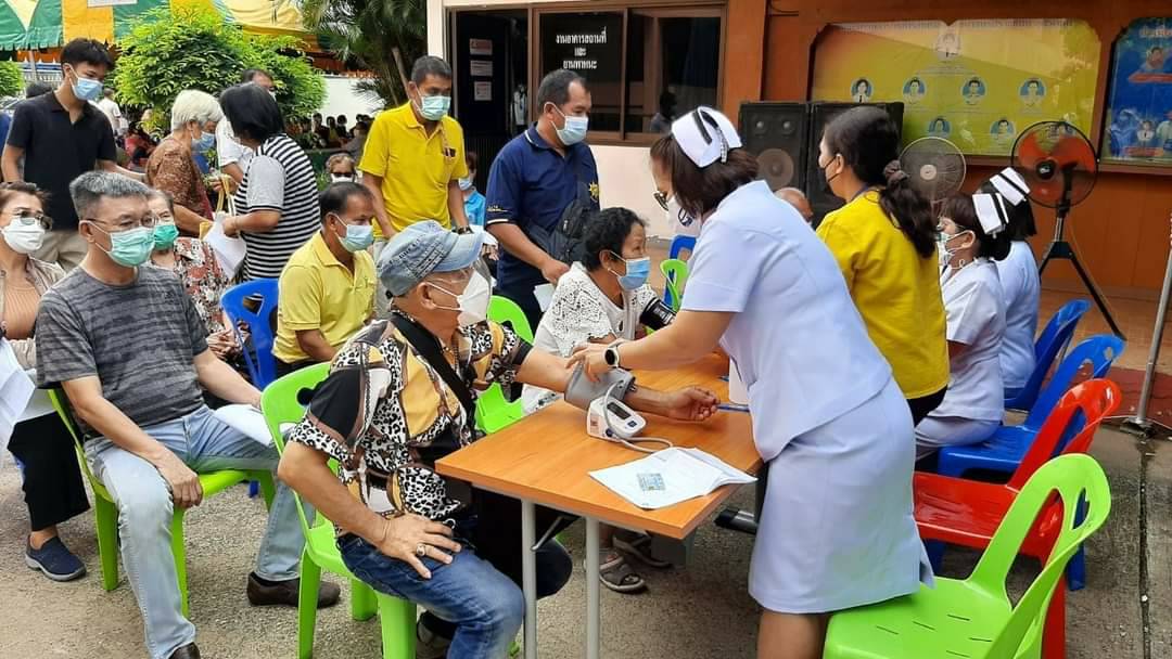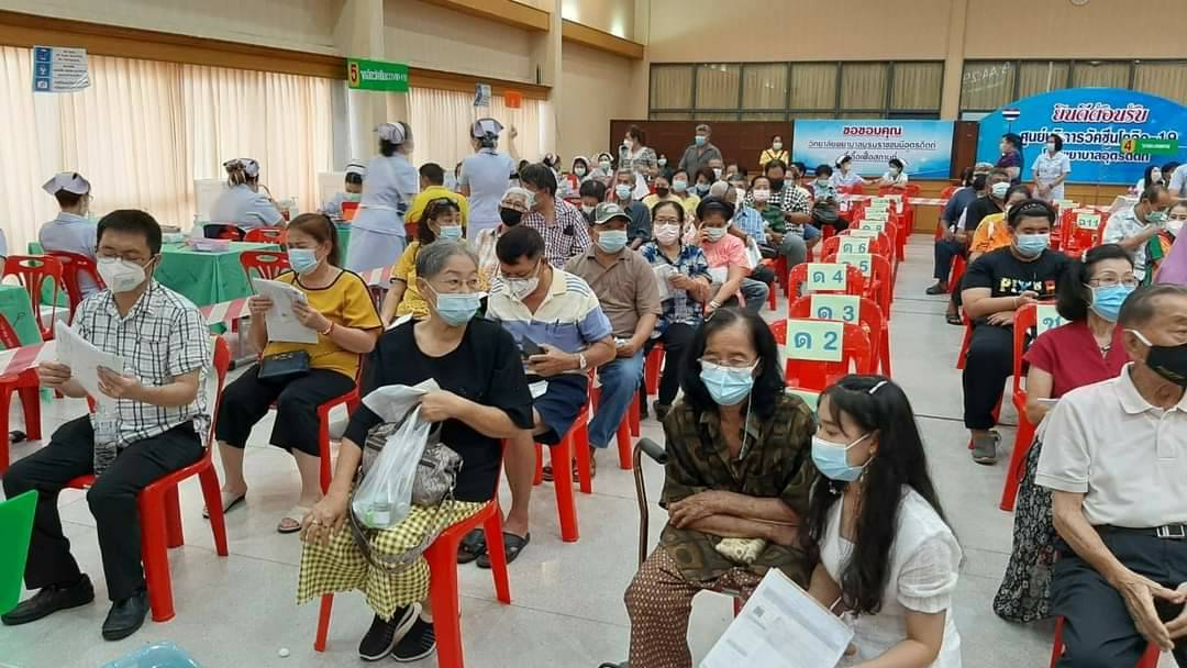 ที่ หอประชุมสักทอง วิทยาลัยพยาบาลบรมราชชนนีอุตรดิตถ์ ประชาชนกลุ่มผู้มีอายุ 60 ปีขึ้นไปและกลุ่มผู้มีโรคประจำตัว 7 โรคเรื้อรัง ที่ได้ลงทะเบียนในแอพพลิเคชั่นหมอพร้อม หรือ ลงทะเบียนกับ อสม. รพ.สต. และโรงพยาบาลอุตรดิตถ์ จำนวน 900 คน ได้พร้อมใจกันมารับการฉีดวัคซีนป้องกันโรคโควิด-19 อย่างคึกคัก