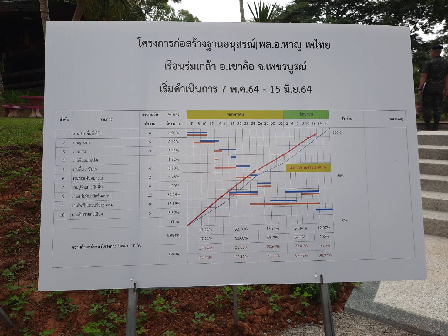 กองพลทหารม้าที่ 1 ดำเนินโครงการก่อสร้างฐานอนุสรณ์ พล.อ.หาญ เพไทย ที่เรือนร่มเกล้า อ.เขาค้อ จังหวัดเพชรบูรณ์ เพื่อเป็นแหล่งเรียนรู้ทางประวัติศาสตร์ที่สำคัญอีกแห่งหนึ่งของจังหวัด โดยการดำเนินโครงการดังกล่าว เริ่มตั้งแต่วันที่ 7 พฤษภาคม ถึง 15 มิถุนายน 64 เป็นงานฐานราก งานก่อแท่นอนุสรณ์ งานปูหินแกรนิตพื้น งานไฟฟ้าและปรับภูมิทัศน์ ซึ่งแต่ละงานมีความคืบหน้ากว่า 80 % เร็วกว่าแผนงานปกติ 3.44 % คาดว่าจะแล้วเสร็จในเดือน สิงหาคม 2564 เพื่อเตรียมเปิดให้ประชาชนเข้ามาชมและร่วมรำลึกถึง วีรบุรุษนักรบ ที่เสียสละชีวิตในช่วงของการเป็นทหารเพื่อปกป้องอธิปไตยของชาติ ในสมรภูมิการรบในอดีต