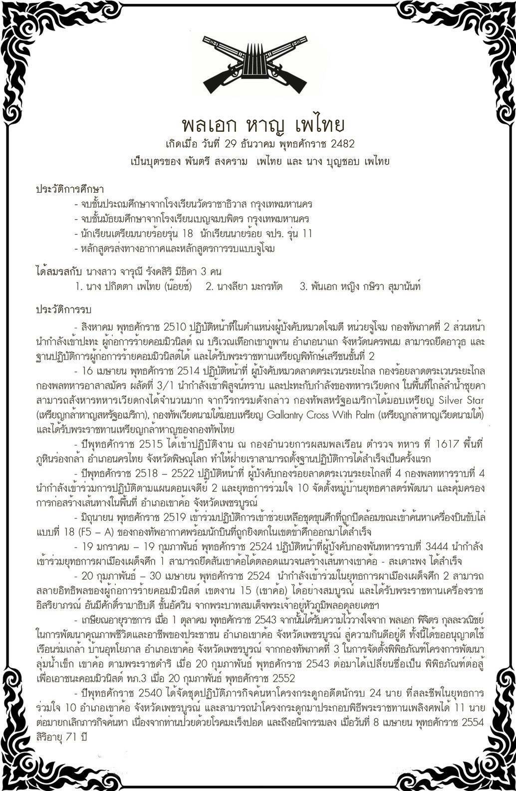 สำหรับ พลเอก หาญ เพไทย เกิดเมื่อ วันที่ 29 ธันวาคม พุทธศักราช 2482 เป็นบุตรของ พันตรี สงคราม เพไทย และ นาง บุญชอบ เพไทย