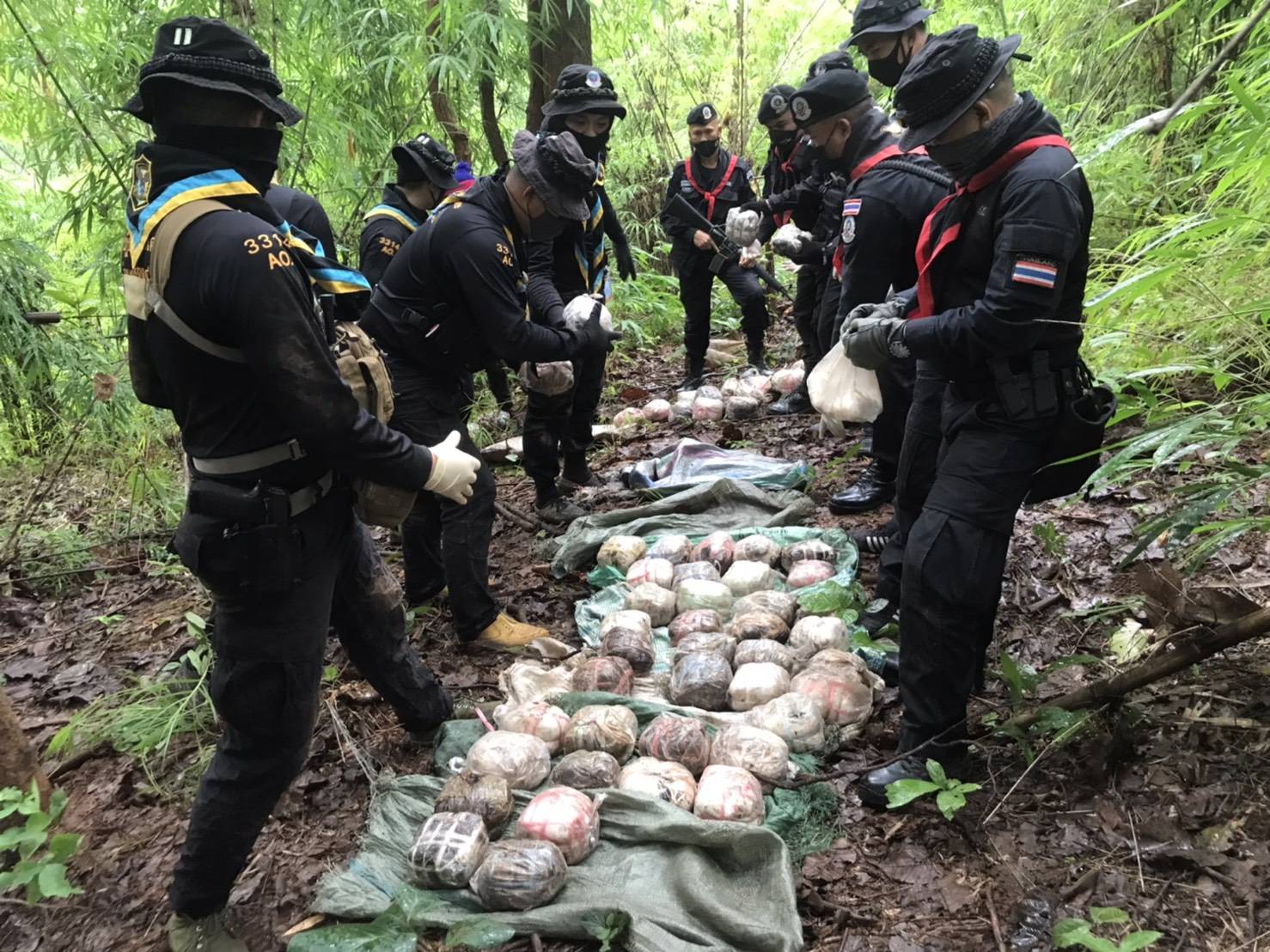 วันที่ 25 ก.ค. 64 เวลา 10.00 น.พล.ต.นฤทธิ์ ถาวรวงษ์ ผู้บัญชาการกองกำลังผาเมือง เปิดเผยว่า จากการที่กองบังคับการควบคุมทหารพราน ศูนย์ปฏิบัติการกองทัพภาคที่ 3 กองกำลังผาเมือง ( บก.ควบคุม ทพ.ศปก.ทภ.3 ) ได้รับแจ้งจากแหล่งข่าวว่าจะมีการลักลอบลำเลียงยาเสพติดเข้ามาในพื้นที่รับผิดชอบ จึงจัดกำลังพล 2 ชุดปฏิบัติการออกลาดตระเวนในพื้นที่ที่คาดว่ากลุ่มขบวนการค้ายาเสพติดในพื้นที่จะใช้เป็นเส้นทางลำเลียงเพื่อลักลอบขนยาเสพติดออกมาจากพื้นที่ชายแดน บริเวณ บ.ปางต้นเดื่อ หมู่ 9 ต.แม่อาย อ.แม่อาย จว.เชียงใหม่ ตั้งแต่วันที่ 24 ก.ค.ที่ผ่านมาอย่างต่อเนื่อง โดยสับเปลี่ยนกำลังตลอด 24 ชั่วโมง เพื่อให้การปฏิบัติงานของกำลังพลมีประสิทธิภาพ ต่อมาเมื่อ 25 ก.ค. 64 เวลา 04.30 ได้ตรวจพบกลุ่มบุคคลประมาณ 7 – 8 คน เดินเข้ามาตามเส้นทางธรรมชาติ เจ้าหน้าที่ฝ่ายทหารพรานศูนย์ปฏิบัติการกองทัพภาคที่ 3 กองกำลังผาเมือง จึงแสดงตัวเพื่อขอตรวจค้น และยิงเตือนก่อนที่จะใช้กำลังซุ่มเพื่อจับกุม แต่กลุ่มขบวนการได้ใช้ความชำนาญพื้นที่วิ่งหลบหนีไปได้ ซึ่งจากการตรวจสอบพื้นที่โดยรอบของ เจ้าหน้าที่ฝ่ายทหารพรานศูนย์ปฏิบัติการกองทัพภาคที่ 3 กองกำลังผาเมือง พบเป้ดัดแปลง จำนวน 7 เป้ ภายในบรรจุยาเสพติดให้โทษประเภท 2 (ฝิ่น) จำนวน 75 ก้อน รวมน้ำหนัก 120 กก. และยาเสพติดให้โทษประเภท 1 (ยาบ้า) จำนวน 4,000 เม็ด หน่วยจึงได้นำของกลางส่ง สภ.แม่อาย เพื่อดำเนินคดีตามกฎหมายต่อไป