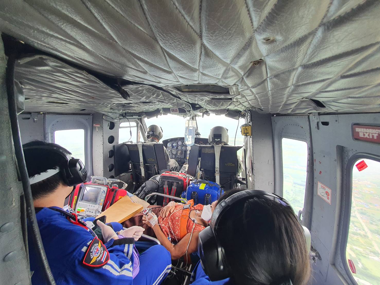 กองกำลังผาเมืองจัด ฮ.ท. 212 ร่วมกับทีมแพทย์ฉุกเฉิน (sky doctor) เคลื่อนย้ายผู้ป่วย กล้ามเนื้อหัวใจขาดเลือด จาก รพ.แม่อาย เข้ารับการรักษาที่ โรงพยาบาลนครพิงค์ จว.ช.ม.