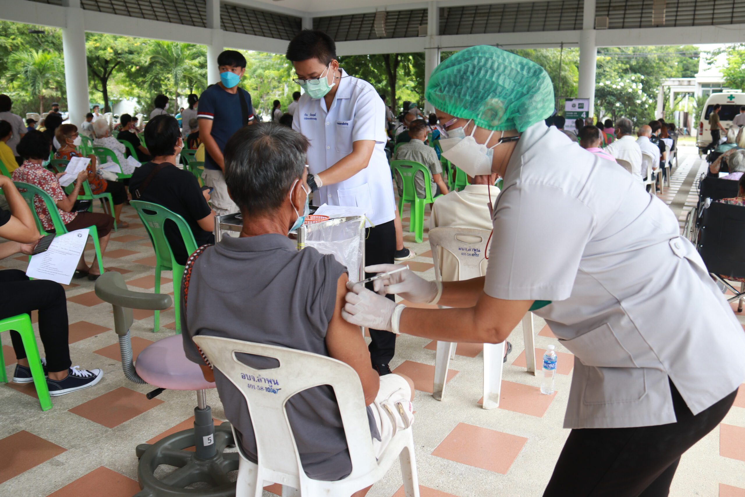 ที่ อาคารฮอมบุญ องค์การบริหารส่วนจังหวัดลำพูน ราชวิทยาลัยจุฬาภรณ์ จัดสรรวัคซีนพระราชทาน ชิโนฟาม (Sinopharm) ผ่าน พอ.สว.จังหวัดลำพูน จำนวน 5,000 โดส เพื่อฉีดให้แก่ประชาชนกลุ่มเป้าหมาย 5 กลุ่ม จำนวน 2,500 คน โดยมี นายวรยุทธ เนาวรัตน์ ผู้ว่าราชการจังหวัดลำพูน พร้อมด้วย นางปนัดดา เนาวรัตน์ นายกเหล่ากาชาดจังหวัดลำพูน ปลัดจังหวัดลำพูน นายกองค์การบริหารส่วนจังหวัดลำพูน นายแพทย์สาธารณสุขจังหวัดลำพูน นายอำเภอเมืองลำพูน ผู้อำนวยการโรงพยาบาลลำพูน เยี่ยมให้กำลังใจแก่ประชาชนผู้เข้ารับบริการฉีดวัคซีนและเจ้าหน้าที่ พอ.สว.จังหวัดลำพูน บุคลากรทางการแพทย์ สมาชิกเหล่ากาชาดจังหวัดลำพูน คณะทำงานแม่บ้านมหาดไทยจังหวัดลำพูน และหน่วยงานที่เกี่ยวข้องที่ร่วมกันให้บริการคอยอำนวยความสะดวกให้แก่ประชาชนในการจัดระบบการฉีดวัคซีนชิโนฟาร์มให้มีความสะดวก รวดเร็ว และไม่แออัดให้แก่ประชาชนที่เข้ามาใช้บริการ เพื่อให้ประชาชนและเจ้าหน้าที่ได้ปฏิบัติตามมาตรการ DMHTT อย่างเคร่งคัด เพื่อเป็นการป้องกันการแพร่ระบาดของเชื้อไวรัสโควิด-19