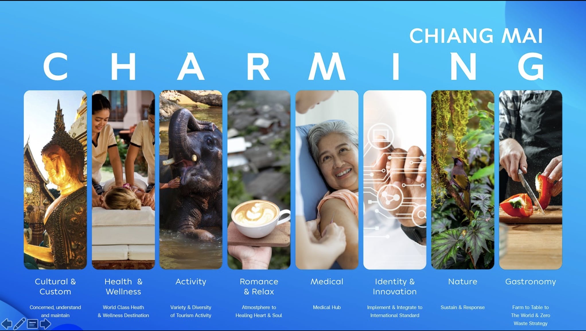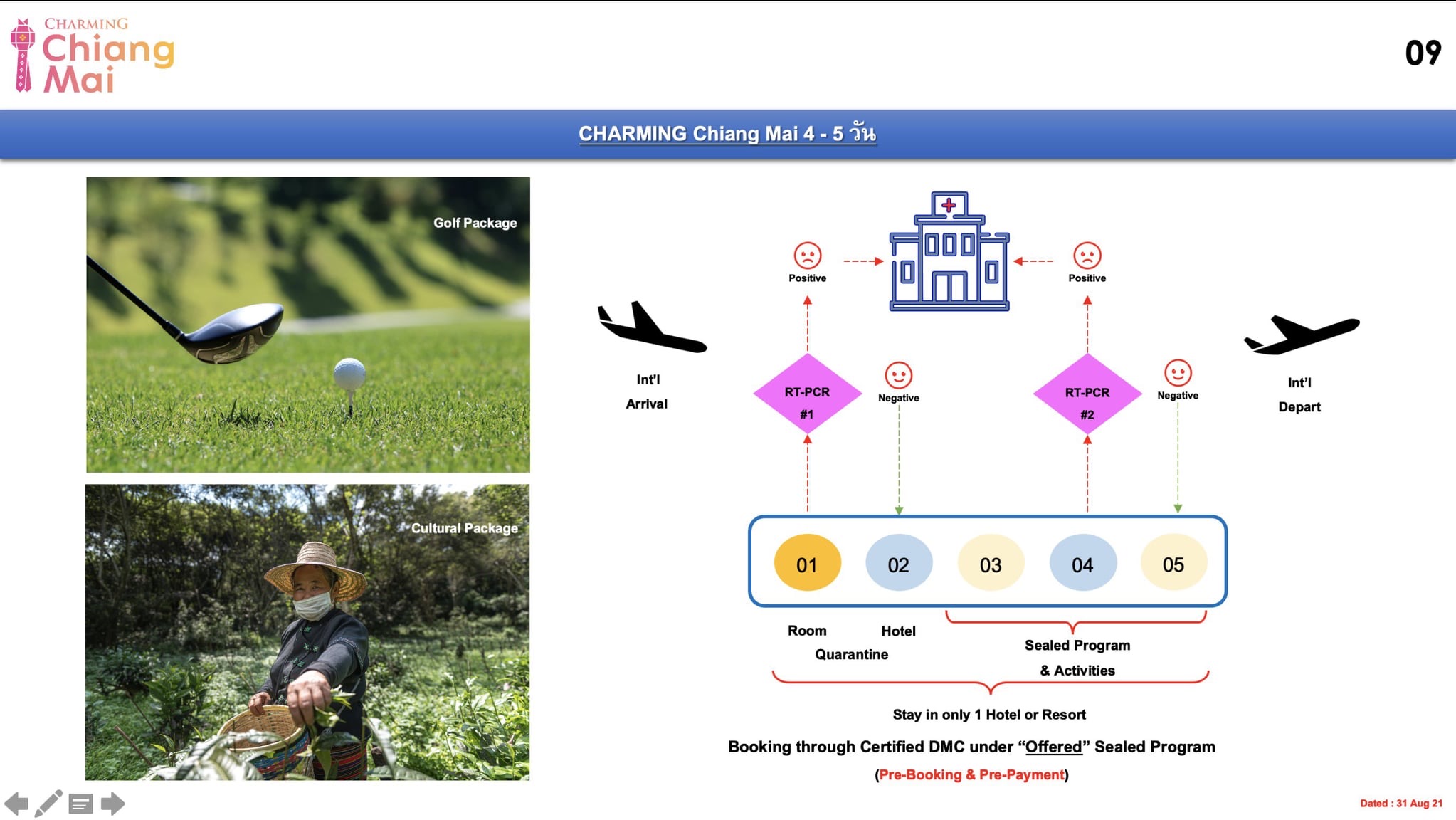ด้านการเปิดเมืองเชียงใหม่ เพื่อรับนักท่องเที่ยวต่างชาติเข้ามา ตามโครงการ CHARMING Chiang Mai นั้นจะต้องคำนึงถึงความปลอดภัยของพี่น้องประชาชนชาวเชียงใหม่เป็นหลัก โดยจะประเมินตามแนวโน้มของสถานการณ์การแพร่ระบาดของโรคโควิด-19 และปริมาณการฉีดวัคซีนให้กับประชาชนในพื้นที่ก่อน หากได้รับการฉีดให้ประชาชนเกินกว่า 70% จึงจะมีการพิจารณาดำเนินการอีกครั้งหนึ่ง ซึ่งขณะนี้ด้านหน่วยงานที่เกี่ยวข้องได้มีการหารือแผนสำรอง เพื่อให้ผู้ประกอบการด้านการท่องเที่ยวสามารถดำเนินกิจการได้ หากในวันที่ 1 ตุลาคมนี้ ยังไม่พร้อม อาจจะมีการพิจารณาให้เปิดเฉพาะพื้นที่ที่สามารถควบคุมการเข้า-ออกได้ก่อนเท่านั้น เช่น สนามกอล์ฟ หรือพื้นที่เฉพาะอื่นที่สามารถให้ผู้ประกอบการร้านอาหาร สปา และอื่นๆ เข้าไปให้บริการ แก่ผู้เข้าใช้บริการ โดยผู้ที่จะเข้าไปในพื้นที่ดังกล่าวจะต้องได้รับการฉีดวัคซีนจนครบแล้วเท่านั้น ส่วนในพื้นที่อื่นๆ หากได้รับการประเมินแล้วว่าปลอดภัย ก็จะสามารถเปิดรับนักท่องเที่ยวได้ในภายหลัง