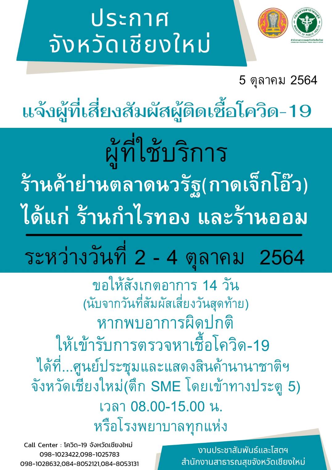เชียงใหม่ ประกาศยกเลิกมาตรการควบคุมการเดินทางของพนักงาน บริษัท แพนดอร่า โพรดักชั่น จำกัด เข้ามาในพื้นที่