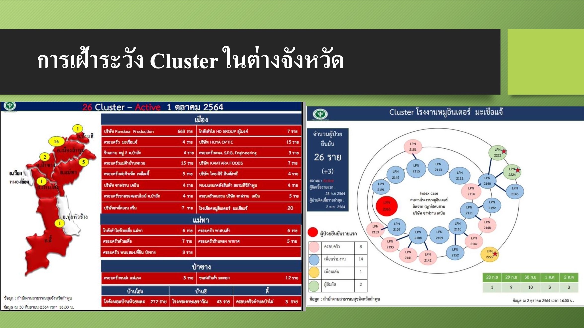 สาธารณสุขจังหวัดเชียงใหม่ ยืนยันสถานการณ์โรคโควิด-19 ของจังหวัดเชียงใหม่ ยังอยู่ในเกณฑ์ที่สามารถควบคุมได้ จากการเร่งตรวจคัดกรองเชิงรุกเมื่อพบคลัสเตอร์ใหม่ เพื่อไม่มีการแพร่กระจายโรคไปสู่ชุมชน