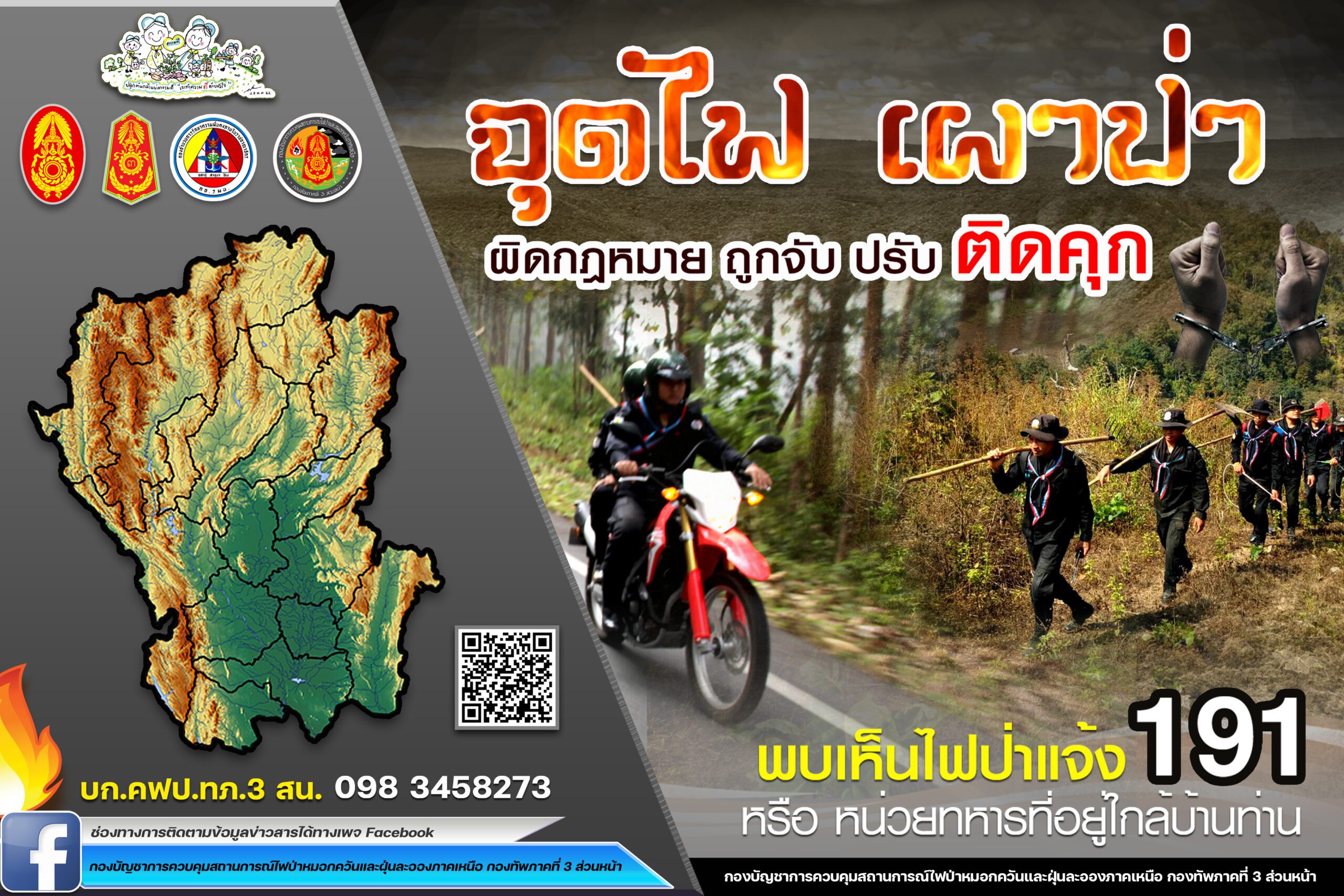 กองบัญชาการควบคุมสถานการณ์ไฟป่าหมอกควันและฝุ่นละอองภาคเหนือ  กองทัพภาคที่ 3 ส่วนหน้า ยังคงติดตามสถานการณ์ไฟป่า หมอกควัน และฝุ่นละออง ในพื้นที่ 17 จังหวัดภาคเหนือ พร้อมประสานส่วนราชการที่เกี่ยวข้องเพื่อร่วมกันแก้ไขปัญหาไฟป่าหมอกควันและฝุ่นละออง