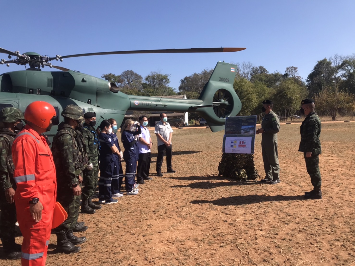 ฉก.ม.4 ฝึกทบทวนการปฏิบัติภารกิจร่วมกับอากาศยาน ฮ.ท.145 (Air Ambulance) ในการลำเลียงผู้ป่วยฉุกเฉินทางอากาศในพื้นที่อำเภอชายแดน