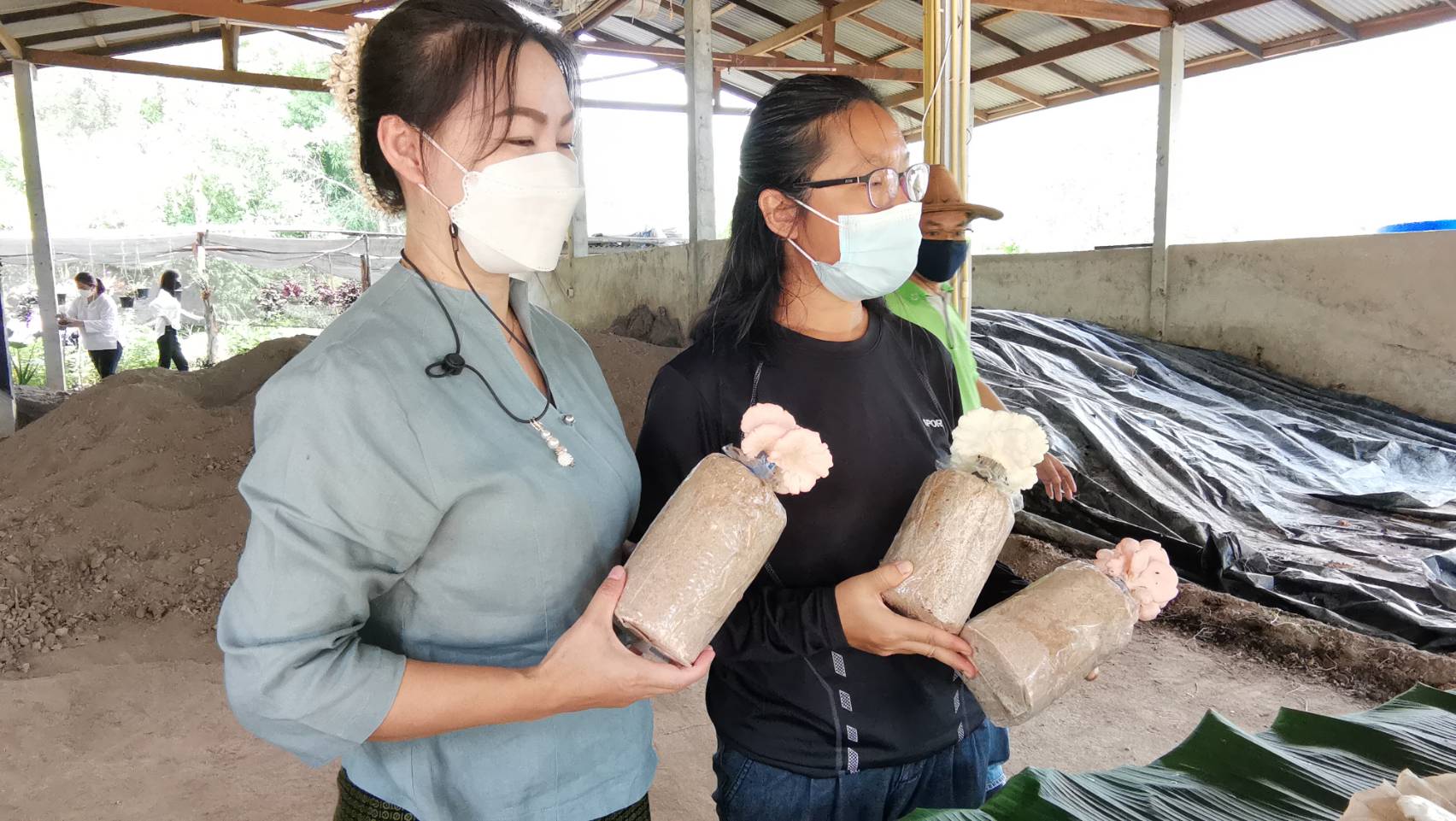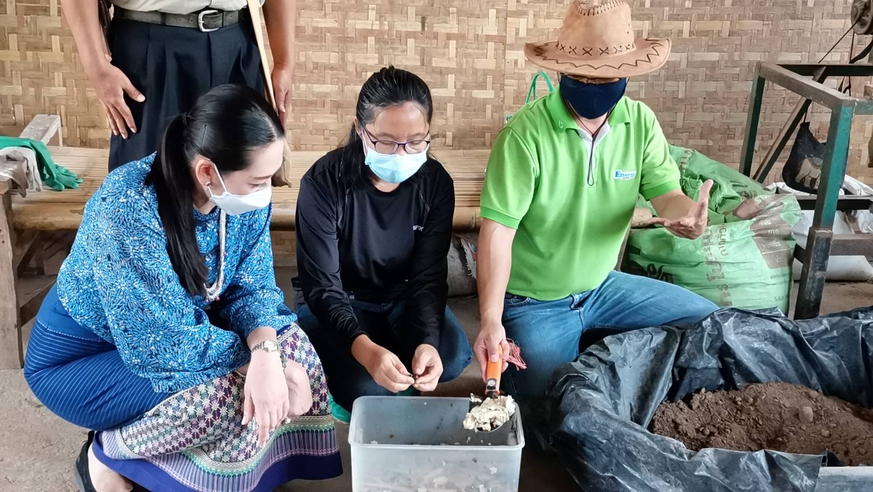เมื่อวันที่ 23 พ.ค.65 ที่โรงปุ๋ยปางช้างแม่สา อ.แม่ริม จ.เชียงใหม่ นางอัญชลี กัลมาพิจิตร ผู้บริหารปางช้างแม่สา ให้การต้อนรับ ดร.สุมิตร อธิพรหม รองผู้อำนวยการฝ่ายประสานงานและกิจการพิเศษ ศูนย์วิจัยและพัฒนานวัตกรรมเห็ดป่าแม่โจ้ พร้อมคณะฯ นายทวีศักดิ์ อ่องศิริกุล ประธานกลุ่มวิสาหกิจชุมชนสร้างป่าสร้างรายได้เพิ่มมูลค่าใบไม้ ต.ขี้เหล็ก อ.แม่ริม จ.เชียงใหม่ ทั้งหมดมาสาธิตพร้อมให้ความรู้จากการทำปุ๋ยสูตรต่างๆ โดยเฉพาะการเพาะเห็ดป่า เห็ดสวน เห็ดเพาะที่เพาะขายทั่วไปโดยการนำเชื้อเห็ดผสมกับปุ๋ยมูลช้างอัดเม็ดและปุ๋ยมูลช้างชนิดผง เพื่อต่อยอดการสร้างมูลค่าเพิ่มของมูลช้าง และยังช่วยส่งเสริมรายได้ให้กลุ่มวิสาหกิจชุมชนสร้างป่าสร้างรายได้เพิ่มมูลค่าใบไม้ ที่นำกระถางแปรรูปจากใบไม้ โดยนำกระถางที่ทำจากมูลช้าง และกระถางใบไม้นำมาเป็นกระถางเพาะเห็ดจากมูลช้างด้วย