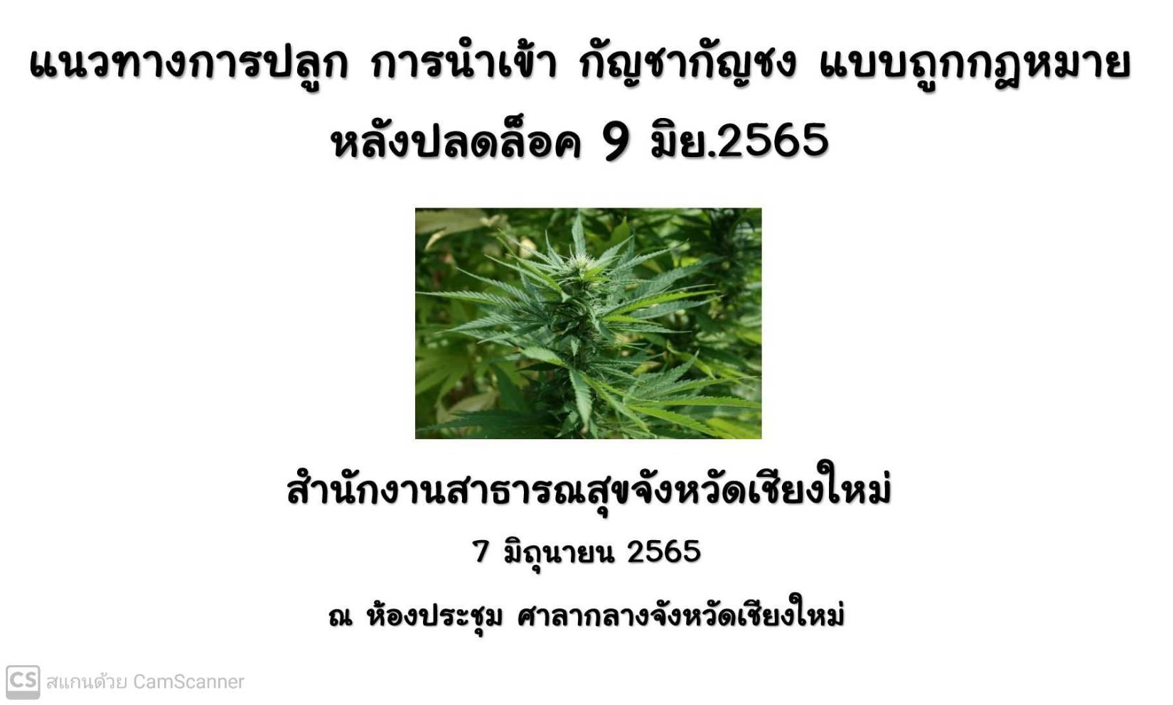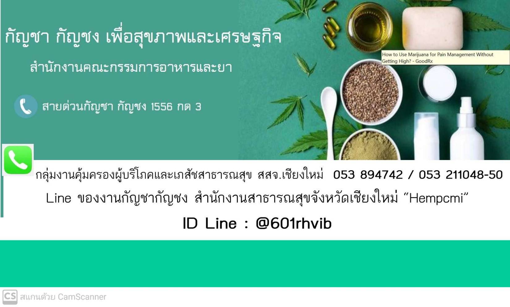 ทั้งนี้ หากมีข้อสงสัย หรือมีปัญหาในการยื่นจดแจ้งการปลูกฯ สามารถสอบถามได้ที่ Line ของงานกัญชากัญชง สำนักงานสาธารณสุขจังหวัดเชียงใหม่ ID Line :@601rhvib