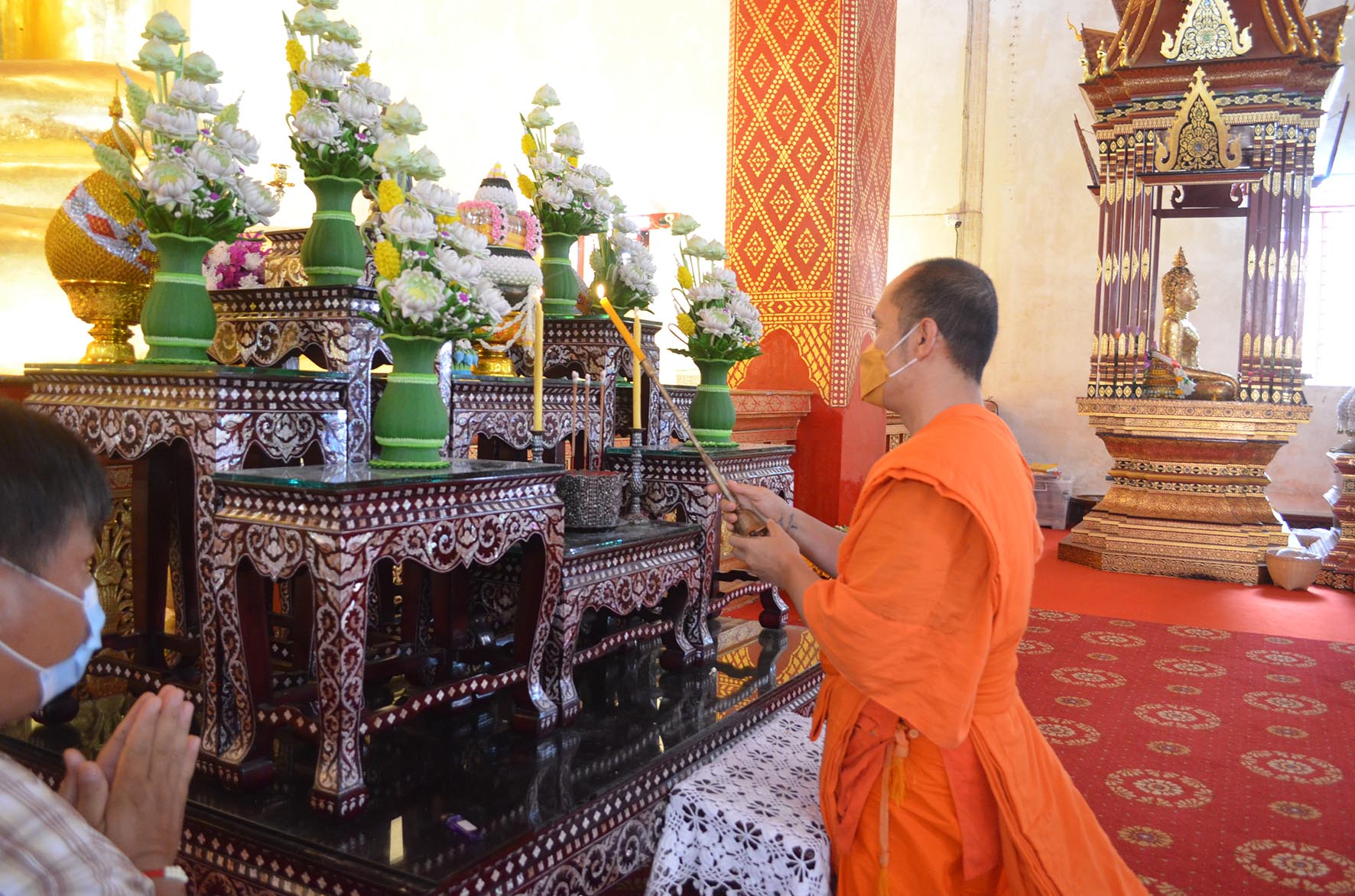 จากนั้นพระราชปริยัติ เจ้าอาวาสาวัดศรีโคมคำ ได้เข้ามายังวิหารพระเจ้าตนหลวง พระครูพิศาลสรกิจ เลขาเจ้าคณะจังหวัดพะเยา ได้นิมนต์ พระราชปริยัติ จุดเทียนธูป บูชาพระรัตนตรัย นำสวดมนต์ ก่อนเข้าพิธีขอขมา