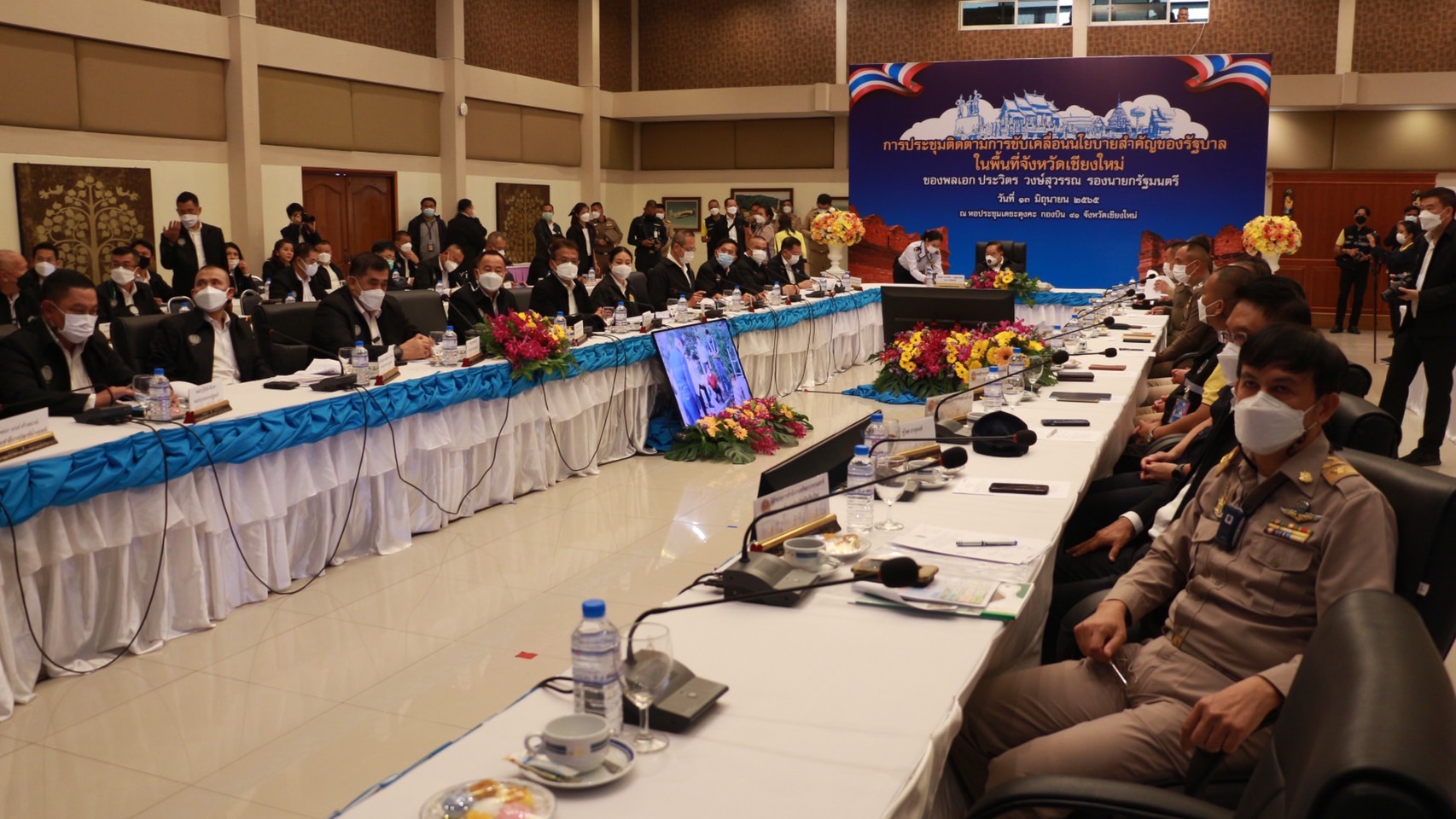 พลเอก ประวิตร วงษ์สุวรรณ รองนายกรัฐมนตรี ได้มอบนโยบายการดำเนินงานแก่ส่วนราชการ โดยเน้นย้ำให้ทุกหน่วยงาน ให้ความสําคัญและสนับสนุนการขับเคลื่อนการบริหารจัดการทรัพยากรน้ำ ภายใต้กลไกของคณะอนุกรรมการทรัพยากรน้ำระดับจังหวัด เพื่อเป็นเครื่องมือสําคัญในการแก้ไขปัญหาและพัฒนาคุณภาพชีวิต ความเป็นอยู่ของประชาชน โดยให้สํานักงานทรัพยากรน้ำแห่งชาติ พิจารณาให้การสนับสนุนโครงการเพื่อแก้ไขปัญหาความเดือดร้อนของประชาชนในพื้นที่ ทั้งการพัฒนา แหล่งน้ำเพื่อการเกษตร และอุปโภคบริโภค และให้ทุกหน่วยงาน ดําเนินการตาม 13 มาตรการ รับมือฤดูฝนปี 2565 ที่คณะรัฐมนตรีได้เห็นชอบแล้วอย่างเคร่งครัด โดยให้ขับเคลื่อนและบูรณาการการทํางานร่วมกันผ่านอนุกรรมการทรัพยากรน้ำจังหวัดเชียงใหม่