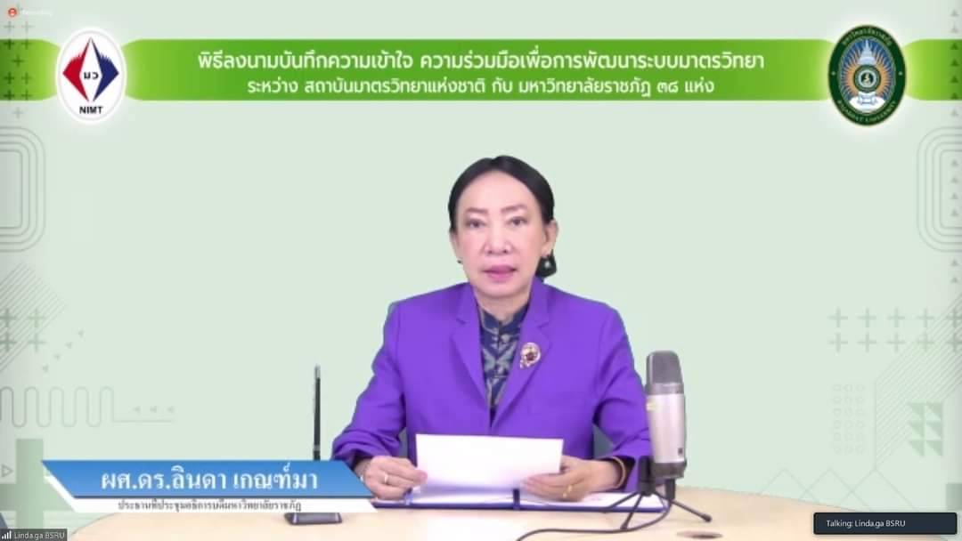 โดยบันทึกข้อตกลงความร่วมมือดังกล่าวมีวัตถุประสงค์เพื่อส่งเสริมและให้ความรู้ในเรื่องมาตรฐานการวัด การใช้เครื่องมือวัดที่ถูกต้อง เทคนิคการวัด และมาตรฐานการจัดการด้านคุณภาพที่สอดคล้องกับมาตรฐานระหว่างประเทศ อันจะเป็นการเพิ่มศักยภาพให้กับนักศึกษาก่อนสำเร็จการศึกษาที่ได้รับประกาศนียบัตรรับรองเพื่อนำไปสร้างมูลค่าเพิ่มและการรับรองจากสถานประกอบการต่อไป โดยได้รับเกียรติจาก ผศ.ลินดา เกณฑ์มา อธิการบดีมหาวิทยาลัยราชภัฏบ้านสมเด็จเจ้าพระยา ประธานที่ประชุมอธิการบดีมหาวิทยาลัยราชภัฏ และ นางอัจฉรา เจริญสุข ผู้อำนวยการสถาบันมาตรวิทยาแห่งชาติ แถลงเจตจำนงความร่วมมือเพื่อ