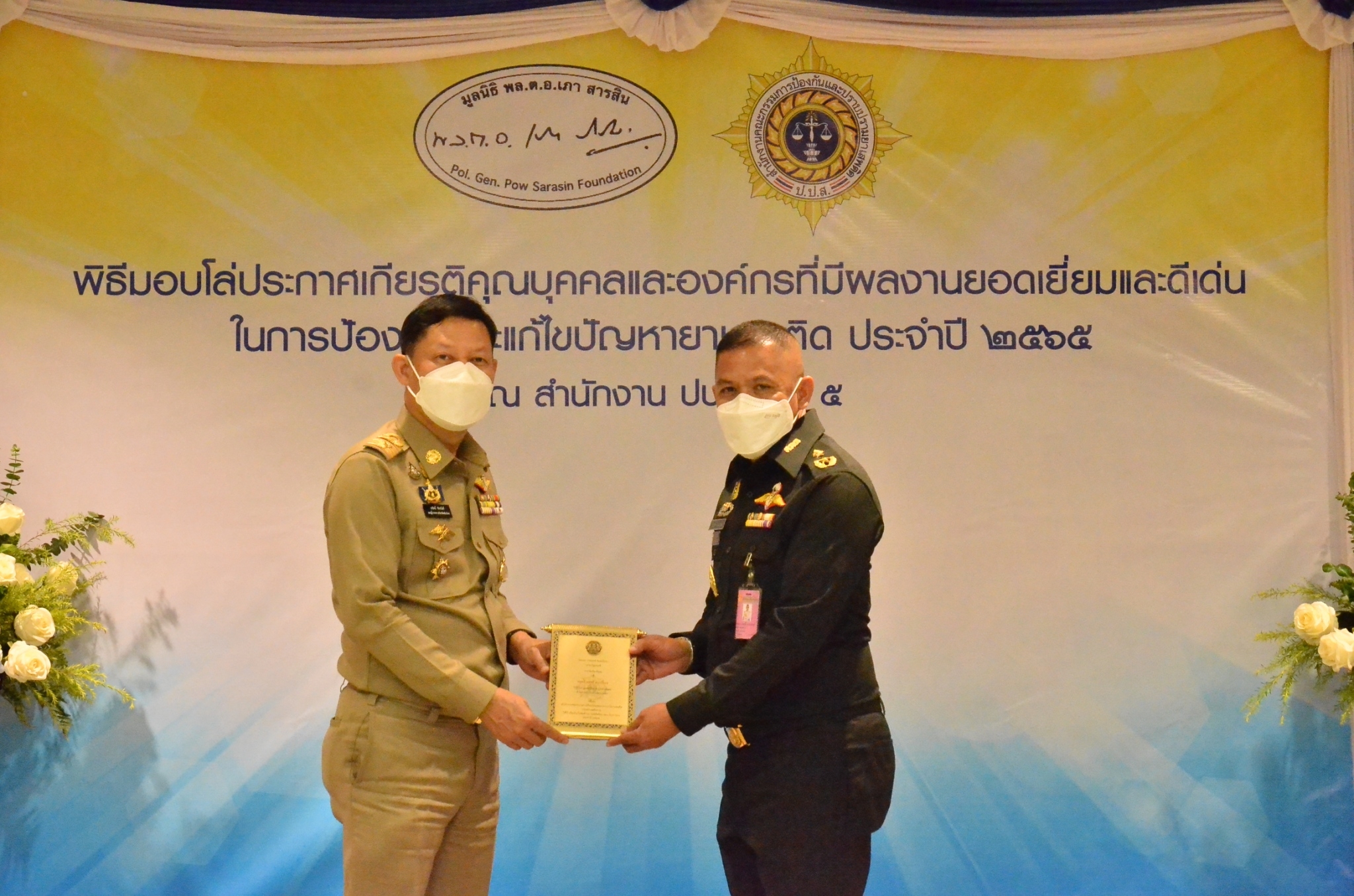 สำนักงานป้องกันและปราบปรามยาเสพติด ภาค 5 จัดพิธีมอบโล่ประกาศเกียรติคุณแก่บุคคลที่มีผลงานดีเด่นในการป้องกันและแก้ไขปัญหายาเสพติด ประจำปี 2565 เพื่อเชิดชูเกียรติบุคคลและองค์กรที่ทุ่มเทเสียสละในการป้องกันและแก้ไขปัญหายาเสพติด