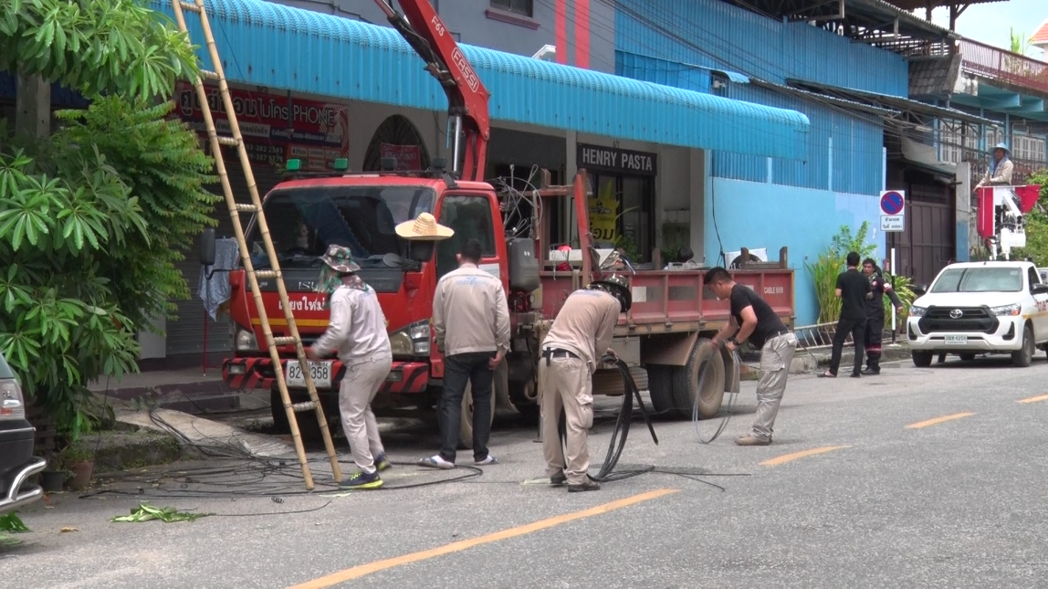 นายเสรี นันสูงเนิน เจ้าหน้าที่ตรวจสอบ สำนักงาน กสทช. เขต 32 กล่าวว่า การดำเนินการปรับปรุงสายสื่อสารบริเวณนี้ในวันนี้เป็นประเด็นมาจากกรณีมีการร้องเรียนว่าสายสื่อสารต่างๆ ที่ติดตั้งบริเวณนี้อยู่ในระดับความสูงที่ไม่ได้เป็นไปตามมาตรฐานที่การไฟฟ้าได้กำหนดไว้ในการพาดสายสื่อสารบนเสาไฟฟ้า ประกอบกับบริเวณนี้เป็นแหล่งชุมชนมีการสัญจรหนาแน่น ทางสำนักงานฯ จึงทำการประสานหลายๆ หน่วยงานที่เกี่ยวข้องให้เข้ามาดำเนินการปรับปรุง ตัด ย้ายแนวพาดสายทั้งหมด เพื่อความปลอดภัยของประชาชนในพื้นที่