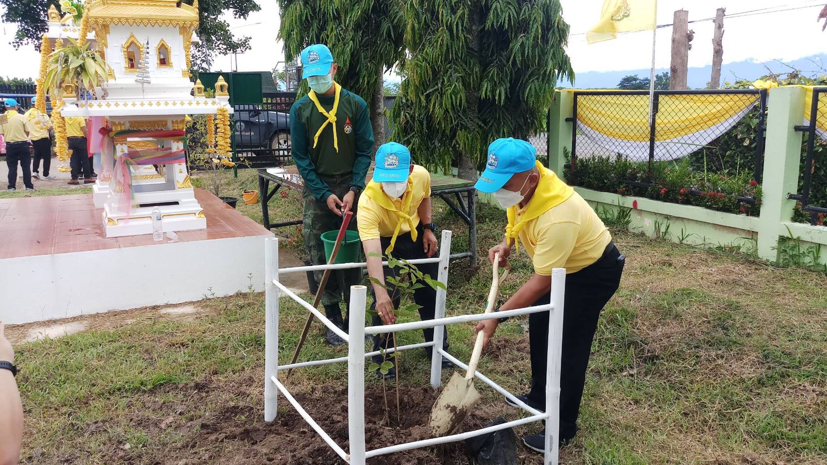 เมื่อวันที่ 21 ก.ค. 65 พล.ต.สมเจตตะณ์ ภักดีบรรณดิษฐ์ ผบ.มทบ.34/ผอ.จอส.พระราชทาน มทบ.34 พร้อมด้วย พ.อ.เจนณรงค์ ขำฉา รอง ผบ.มทบ.34/รอง ผอ.รมน.จังหวัด พ.ย. ได้จัดกำลังพล จิตอาสาพระราชทาน มทบ.34 จำนวน 50 นาย ร่วมกิจกรรม จิตอาสาพระราชทาน “เราทำความดี ด้วยหัวใจ” ปลูกต้นไม้ ตามโครงการรักษ์สิ่งแวดล้อมเฉลิมพระเกียรติ เนื่องในโอกาสครบรอบวันเฉลิมพระชนมพรรษา พระบาทสมเด็จพระเจ้าอยู่หัว 70 พรรษา 28 ก.ค. 65 เพื่อแสดงความจงรักภักดีและสำนึกในพระมหากรุณาธิคุณ และรักษาสิ่งแวดล้อมเพิ่มพื้นที่สีเขียวในพื้นที่ ต.บ้านเหล่า อ.แม่ใจ จว.พ.ย. ให้มีความชุ่มชื่นสวยงามเป็นระเบียบเรียบร้อย พร้อมทั้งสร้างความสามัคคี การมีส่วนร่วมของทุกภาคส่วนในพื้นที่ ณ สนามเทศบาล ต.บ้านเหล่า อ.แมใจ จว.พ.ย. โดยมี นาย ศักดิ์ฤทธิ์ สลักคำ ผู้ว่าราชการ จังหวัดพะเยา เป็นประธานในการเปิดกิจกรรมฯ พร้อมด้วย หัวหน้าส่วนราชการ, ผู้แทนหน่วยงาน และ ประชาชนจิตอาสาพระราชทาน อ.แม่ใจ ร่วมกิจกรรมฯ จำนวน 300 คน