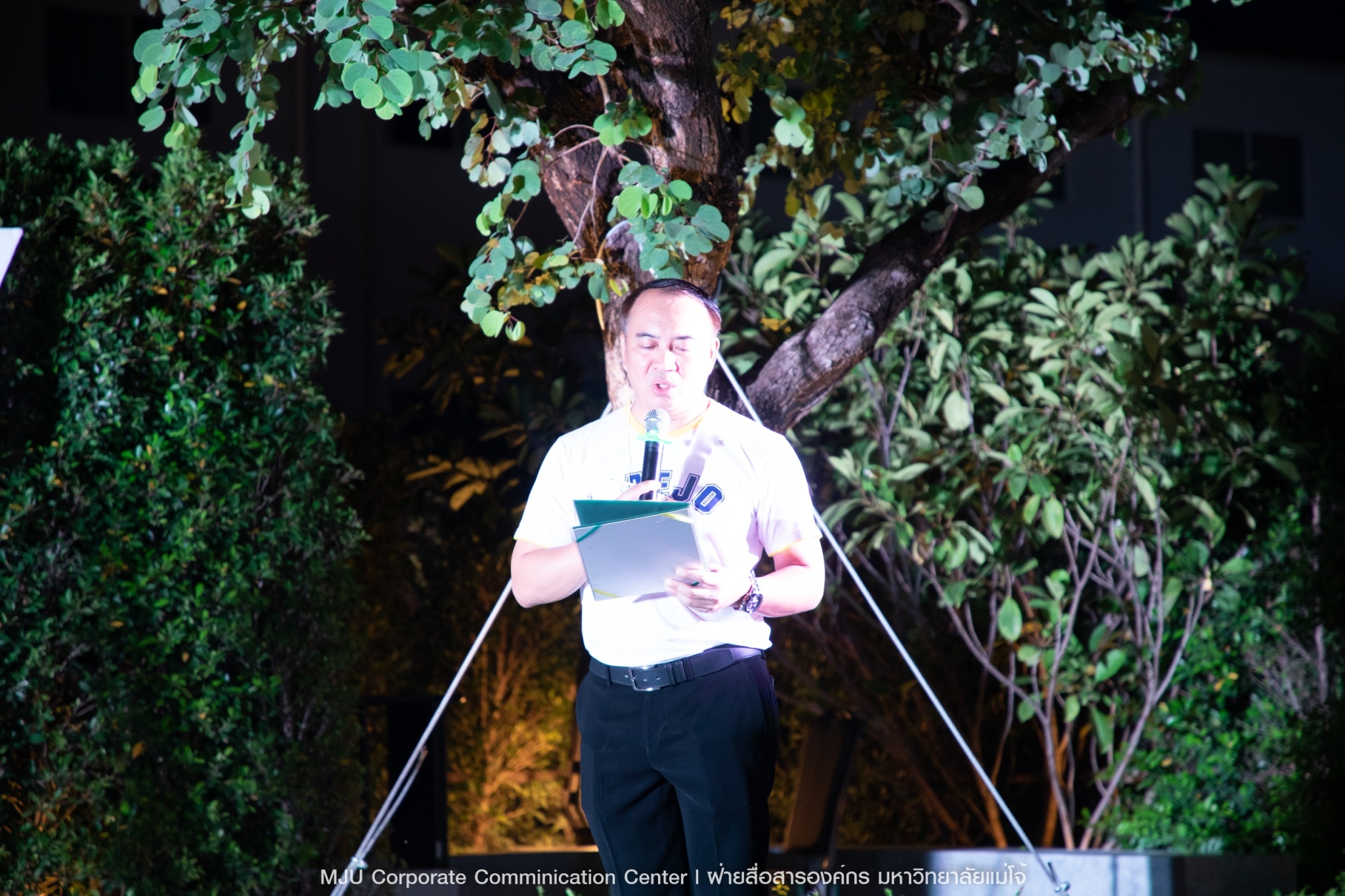 ในช่วงสถานการณ์โควิด – 19 ที่ผ่านมา มหาวิทยาลัยแม่โจ้ ได้ร่วมกับจังหวัดเชียงใหม่ จัดตั้งโรงพยาบาลสนาม และได้ลงนามความร่วมมือกับอำเภอสันทราย จัดตั้ง MJU Well-being hospitech และศูนย์พักคอย โดยมีบุคลากรทางการแพทย์จากโรงพยาบาลสันทรายร่วมดูแลประชาชนในพื้นที่ร่วมกัน เห็นได้ว่าภารกิจสำคัญในการผลิตกำลังคนคุณภาพและเผยแพร่องค์ความรู้เพื่อประโยชน์แก่สังคมชุมชน มีความจำเป็นต้องอาศัยเครือข่ายทุกภาคส่วนให้การสนับสนุน โดยเฉพาะสื่อสารมวลชนทุกแขนงถือเป็นเครื่องมือที่มีพลังมหาศาล เพราะข่าวสารต่าง ๆ ล้วนถูกส่งต่ออย่างรวดเร็วผ่านทางโลกออนไลน์ โอกาสนี้ ขอขอบคุณจังหวัดเชียงใหม่ ขอบพี่น้องสื่อมวลชน ขอบคุณเครือข่ายทุกภาคส่วนที่ได้ให้ความร่วมมือกับมหาวิทยาลัยแม่โจ้ด้วยดีมาตลอด ขอให้ทุกท่านคิดถึงแม่โจ้ในฐานะที่เป็นมหาวิทยาลัยแห่งชีวิต มหาวิทยาลัยของประชาชน มหาวิทยาลัยของชาวเชียงใหม่ที่มุ่งสร้างประโยชน์เพื่อสังคมร่วมกับทุกท่านต่อไป”
