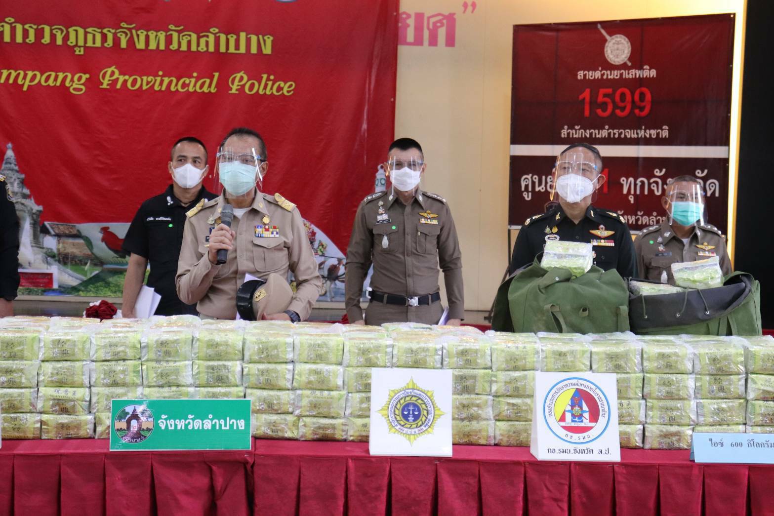 พล.ต.ท.ประจวบ  วงศ์สุข  ผบช.ภ.5, พล.ต.ต.กฤตธาพล  ยี่สาคร, พล.ต.ต.นันทวิทย์  เทียมบุญธง  ผบก.ภ.จว.ลำปาง, ฝ่ายปกครอง    โดย นายณรงค์ศักดิ์  โอสถธนากร  ผู้ว่าราชการจังหวัดลำปางฝ่ายทหาร  โดย พล.ต. อโณทัย  ชัยมงคล ผบ.มทบ.32 สำนักงาน ป.ป.ส. ภาค 5  โดย นายไกรเลิศ ดาวเรือง  ผอ.ป.ป.ส.ภาค 5 ร่วมกันแถลงข่าวบูรณาการกับหน่วยงานที่เกี่ยวข้องแถลงผลการปฏิบัติงานการจับกุมเครือข่ายนักค้ายาเสพติดรายสำคัญ ผู้ต้องหา 7 คน ตรวจยึดไอซ์ 600 กก. รถยนต์​ 3 คัน