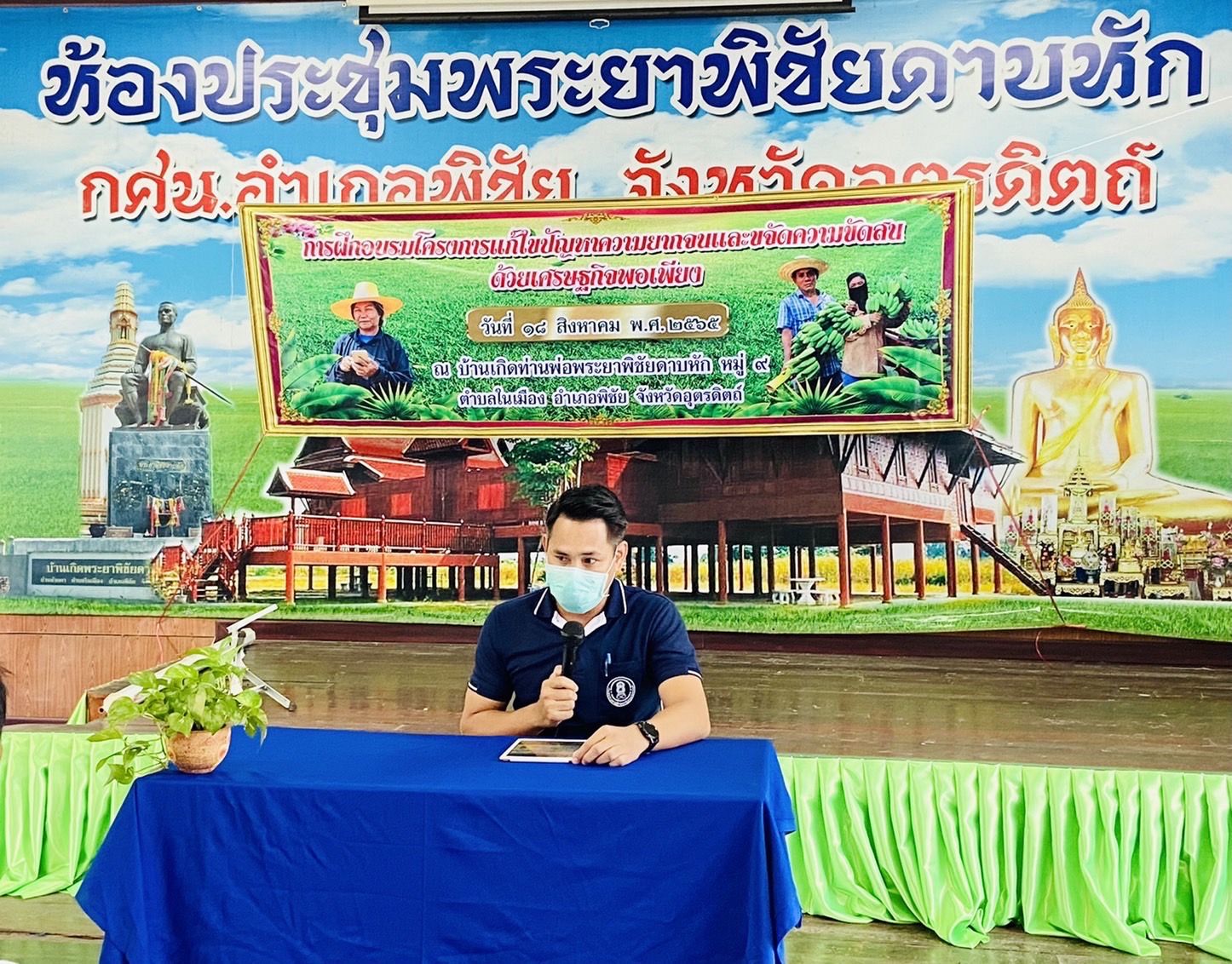 นายสุรศักดิ์ วงศ์ตั้ง นายอำเภอพิชัย เป็นประธานเปิดโครงการแก้ไขปัญหาความยากจนและขจัดความขัดสนด้วยเศรษฐกิจพอเพียง พร้อมด้วยปลัดอำเภอพิชัย เจ้าหน้าที่ ที่ว่าการอำเภอพิชัย วิทยากรกลุ่มจากสำนักงานเกษตรอำเภอพิชัย และคณะคุณครูศูนย์การศึกษานอกระบบและการศึกษาตามอัธยาศัยอำเภอพิชัย ณ บ้านเกิดพระยาพิชัยดาบหัก หมู่ที่ 9 ตำบลในเมือง อำเภอพิชัย จังหวัดอุตรดิตถ์ มีกำหนดการฝึกอบรม เวลา 08.30 – 16.00 น. กลุ่มเป้าหมายจำนวน 60 คน ได้แก่ กลุ่มผู้ตกเกณฑ์ TPmap และประสบปัญหาในการสำรวจข้อมูลในระบบ ThaiQM ของกรมการปกครอง อีกทั้งได้ลงพื้นที่ศึกษาดูงานในฐานการเรียนรู้ต่างๆด้านเศรษฐกิจพอเพียง ณ ศูนย์การศึกษานอกระบบและการศึกษาตามอัธยาศัยอำเภอพิชัย อำเภอพิชัย จังหวัดอุตรดิตถ์ ซึ่งจัดภายใต้โครงการฝึกอบรมเพื่อขับเคลื่อนและแก้ไขปัญหาความเดือดร้อนของประชาชนในพื้นที่ มีวัตถุประสงค์เพื่อฝึกอบรมให้ความรู้เกี่ยวกับหลักปรัชญาเศรษฐกิจพอเพียงและส่งเสริมให้ปรับเปลี่ยนแนวคิดวิธีการดำเนินการเกษตร ให้สามารถพึ่งพาตนเองได้บนวิถีชีวิตแบบพอเพียงโดยนำองค์ความรู้ตามแนวทางพระราชดำริไปปรับใช้ในการดำเนินชีวิต ต่อไปอย่างยั่งยืน
