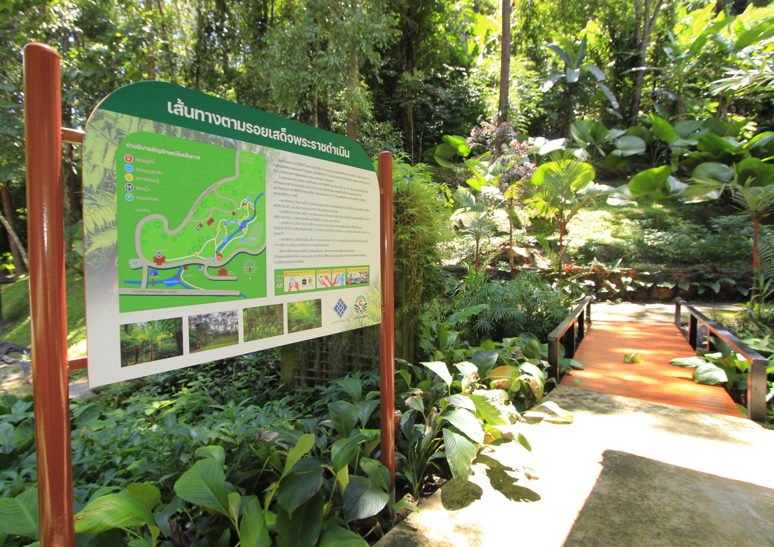 สวนพฤกษศาสตร์สมเด็จพระนางเจ้าสิริกิติ์ เปิดให้เข้าชมเส้นทางเดินศึกษาธรรมชาติ เส้นทางตามรอยเสด็จพระราชดำเนิน ซึ่งเป็นหนึ่งในเส้นทางที่สมเด็จพระนางเจ้าสิริกิติ์ พระบรมราชินีนาถ พระบรมราชชนนีพันปีหลวงเสด็จฯ ทอดพระเนตรงานด้านการอนุรักษ์ทรัพยากรพันธุ์พืชในสวนพฤกษศาสตร์สมเด็จพระนางเจ้าสิริกิติ์ อย่างต่อเนื่องตลอดระยะเวลา 10 ปี โดยเส้นทางศึกษาธรรมชาตินี้มีระยะทาง 1.3 กิโลเมตร ผ่านพืชวงศ์หมาก วงศ์ถั่ว วงศ์ขิงข่า กลุ่มเฟิน และลานสน มีการนำเทคโนโลยีที่ทันสมัย AR และ QR Code นำเสนอภาพประวัติศาสตร์การเสด็จพระราชดำเนิน ความรู้เรื่องพืชที่น่าสนใจ ฐานการเรียนรู้ด้านพืชและการใช้ประโยชน์อย่างยั่งยืนที่สามารถศึกษาได้ด้วยตัวเอง และที่พลาดไม่ได้เลยคือการได้เข้าไปในป่าดงดิบที่เต็มไปด้วยพืชดึกดำบรรพ์เสมือนได้อยู่ในยุคที่มีไดโนเสาร์และยังได้ชื่นชมสัมผัสธรรมชาติอย่างใกล้ชิด เพลิดเพลินไปกับพรรณไม้ที่ทรงคุณค่าหลากหลายชนิดท่ามกลางเสียงธรรมชาติ เสียงนกน้อย เสียงใบไม้กระทบกัน เสียงลำน้ำธรรมชาติ พรรณไม้เด่นที่พบได้แก่ หมากนเรศวร หมากแดง ปาล์มบังสูรย์ ปาล์มเจ้าเมืองตรัง ตาลฟ้า มะพร้าวแฝด ยูงทอง กูดต้นดอยสุเทพ สนสามใบ ปรง เป็นต้น