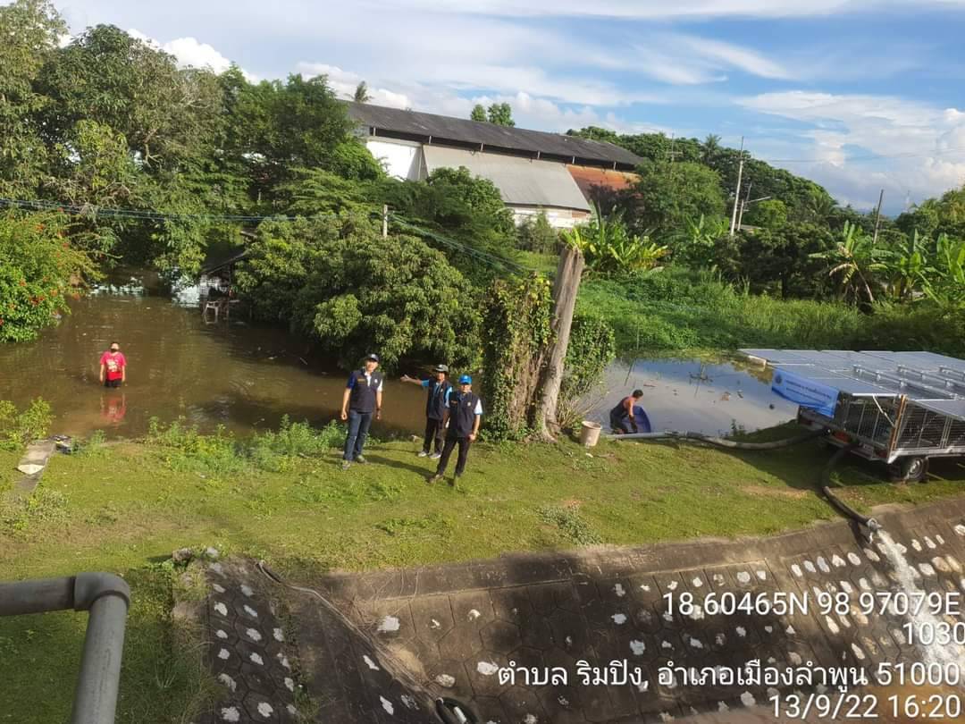 วันที่​ 13 กันยายน 2565 นายสุภรณ์วัฒน์ สุรการ ผู้อำนวยการโครงการชลประทานลำพูน พร้อมด้วย​ นายศักตยา วรรณฤมล หัวหน้าฝ่ายจัดสรรน้ำและปรับปรุงระบบชลประทาน และนางอรินปภา วรศาสตร์ หัวหน้าฝ่ายส่งน้ำและบำรุงรักษาที่ 1 ลงพื้นที่ตรวจสอบพร้อมสนับสนุนเครื่องสูบน้ำเพื่อบรรเทาอุทกภัยในพื้นที่ตำบลอุโมงค์​ อำเภอเมืองลำพูน ซึ่งได้รับผลกระทบจากสถานการณ์ฝนตกหนัก โดยได้ดำเนินการติดตั้งเครื่องสูบน้ำ ขนาด 8 นิ้ว จำนวน 1 เครื่อง สูบระบายน้ำเพื่อบรรเทาความเดือดร้อนของราษฎรในพื้นที่ จากนั้นได้ลงพื้นที่ติดตามสถานการณ์น้ำบริเวณตำบลริมปิง ตำบลอุโมงค์ ตำบลเหมืองง่า ตำบลเวียงยอง อำเภอเมืองลำพูน จังหวัดลำพูน