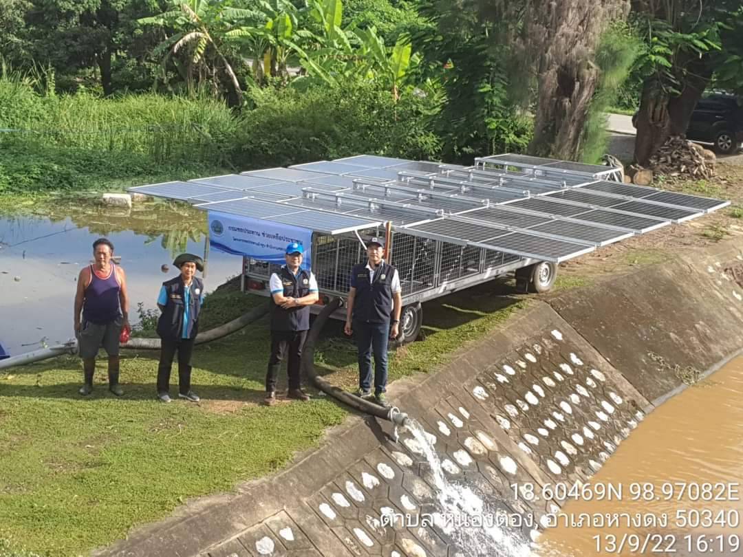 ในส่วนของชุดสูบน้ำด้วยพลังงานแสงอาทิตย์แบบเคลื่อนที่ โครงการชลประทานลำพูนได้นำเข้าไปสูบระบายน้ำช่วยเหลือพื้นที่น้ำท่วมขังบริเวณท้ายคลองส่งน้ำสายใหญ่ ฝายชลขันธ์พินิต (แม่ปิงเก่า) เพื่อช่วยเหลือและบรรเทาความเดือดร้อนของราษฏร
