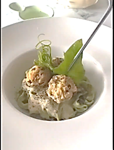 เมนู : เฟตตูชินี่ตำลึงมีทบอลเห็ด &ซอสดอกกะหล่ำพิวเร่