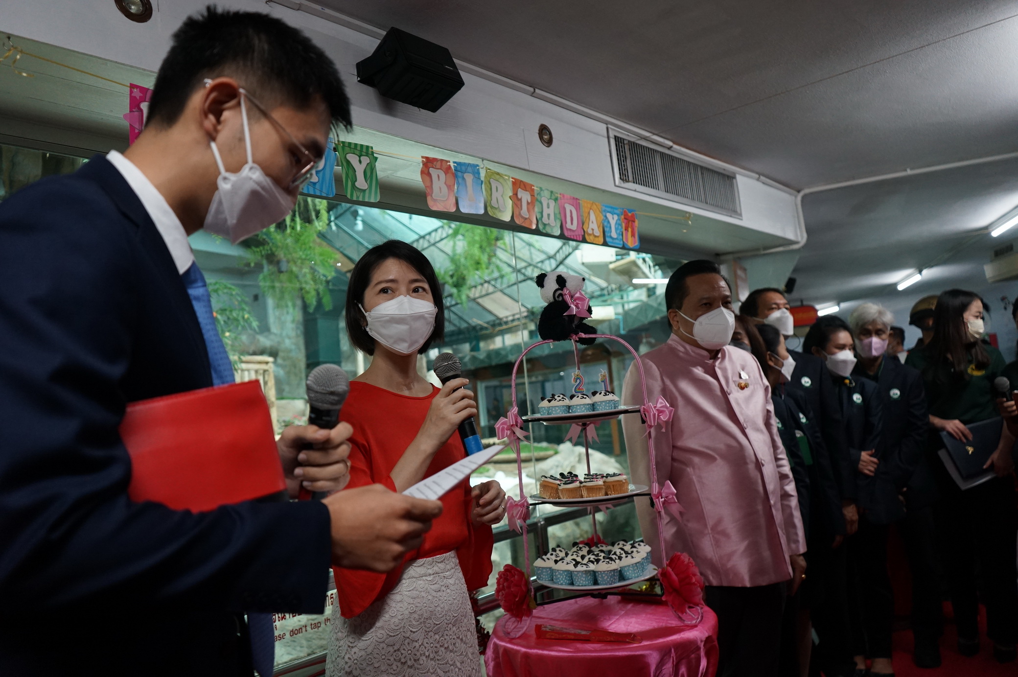 นายวุฒิชัย ม่วงมัน ผู้อำนวยการสวนสัตว์เชียงใหม่ ในฐานะหัวหน้าโครงการวิจัยและจัดแสดงหมีแพนด้าในประเทศไทย พร้อมด้วย รองกงสุลใหญ่ หยาง โจ่ง รองกงสุลใหญ่แห่งสาธารณรัฐประชาชนจีน ประจำเชียงใหม่ ร่วมกันจัดกิจกรรมฉลองครบรอบวันคล้ายวันเกิด 21 ปี หมีแพนด้าหลินฮุ่ย ภายในส่วนจัดแสดงหมีแพนด้า ในโอกาสนี้ผู้บริหารและเจ้าหน้าที่ตลอดจนแฟนคลับของหมีแพนด้าร่วมกันร้องเพลง Happy Birthday และอวยพรวันเกิดให้กับหมีแพนด้าหลินฮุ่ยอีกด้วย โดยทีมงานได้จัดตกแต่งบริเวณรอบๆ ปูด้วยเกล็ดน้ำแข็ง ตกแต่งด้วยต้นไผ่ กิ่งไผ่ และผลไม้ พร้อมเค้กน้ำแข็งสีสันสดใส ขนาด 3 ชั้น ประดับด้วยตัวเลข 21 ปี บนเค้ก ตกแต่งด้วยอาหารหลากหลายชนิด ซึ่งเป็นอาหารโปรดของหลินฮุ่ย อาทิ แครอท แอปเปิ้ล ใบไม้ หน่อไม้ และขนมปังในตะกร้าแสนน่ารักจากแฟนคลับพันธ์ุแท้ที่มอบให้ สร้างความสุข สนุกเพลิดเพลินในการกินอาหารของหมีแพนด้าหลินฮุ่ยเป็นอย่างมาก ภายในงานยังมีน้องๆ จากโรงเรียนเทศบาลตำบลบ้านธิ จำนวน 130 คน เดินทางมาร่วมกิจกรรมฉลองครบรอบ 21 ปีหมีแพนด้าหลินฮุ่ย พร้อมรับขนมคัพเค้กรูปหมีแสนน่ารัก ให้เด็กๆนำกลับไปในโอกาสพิเศษในวันนี้ด้วย