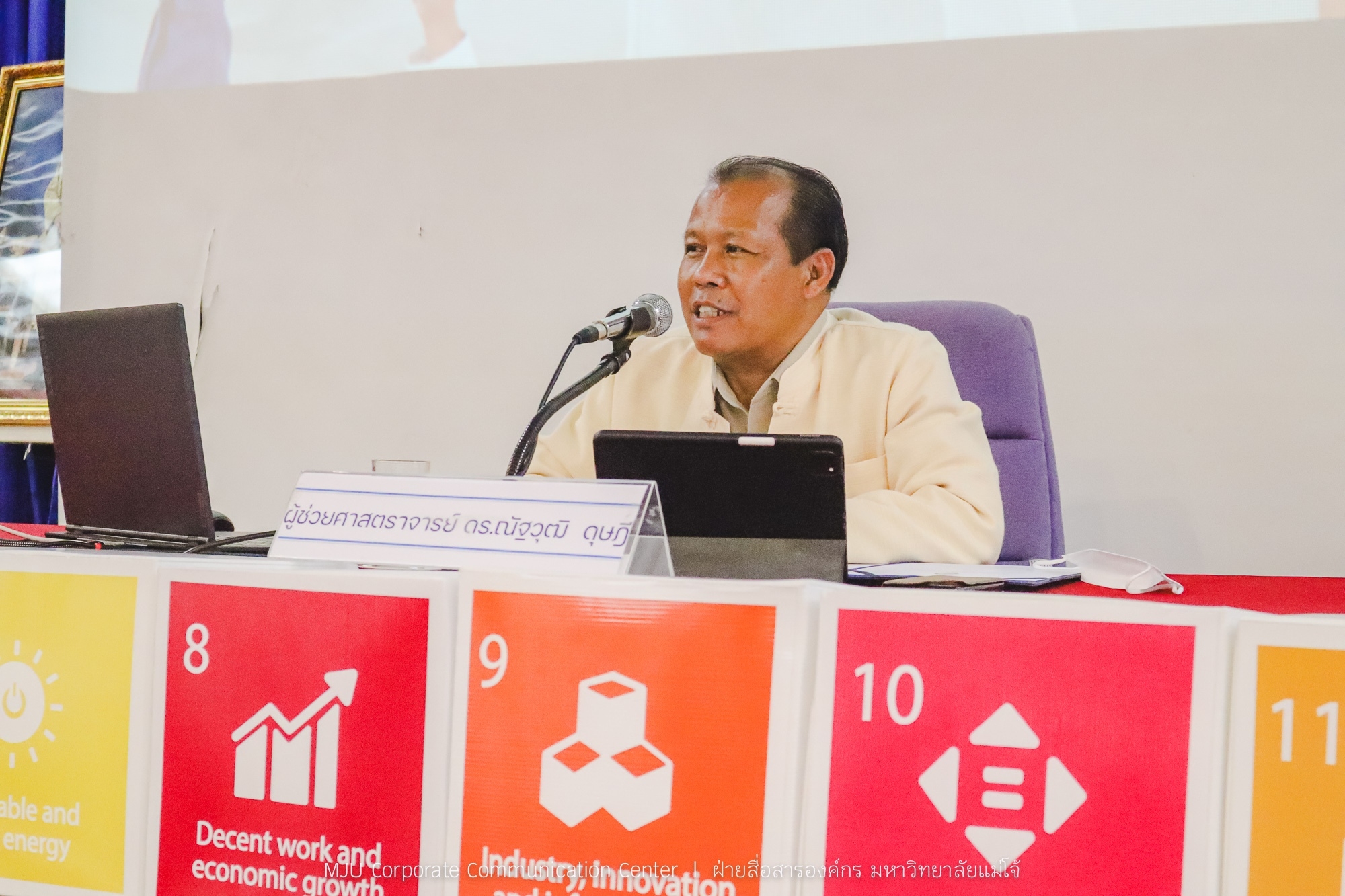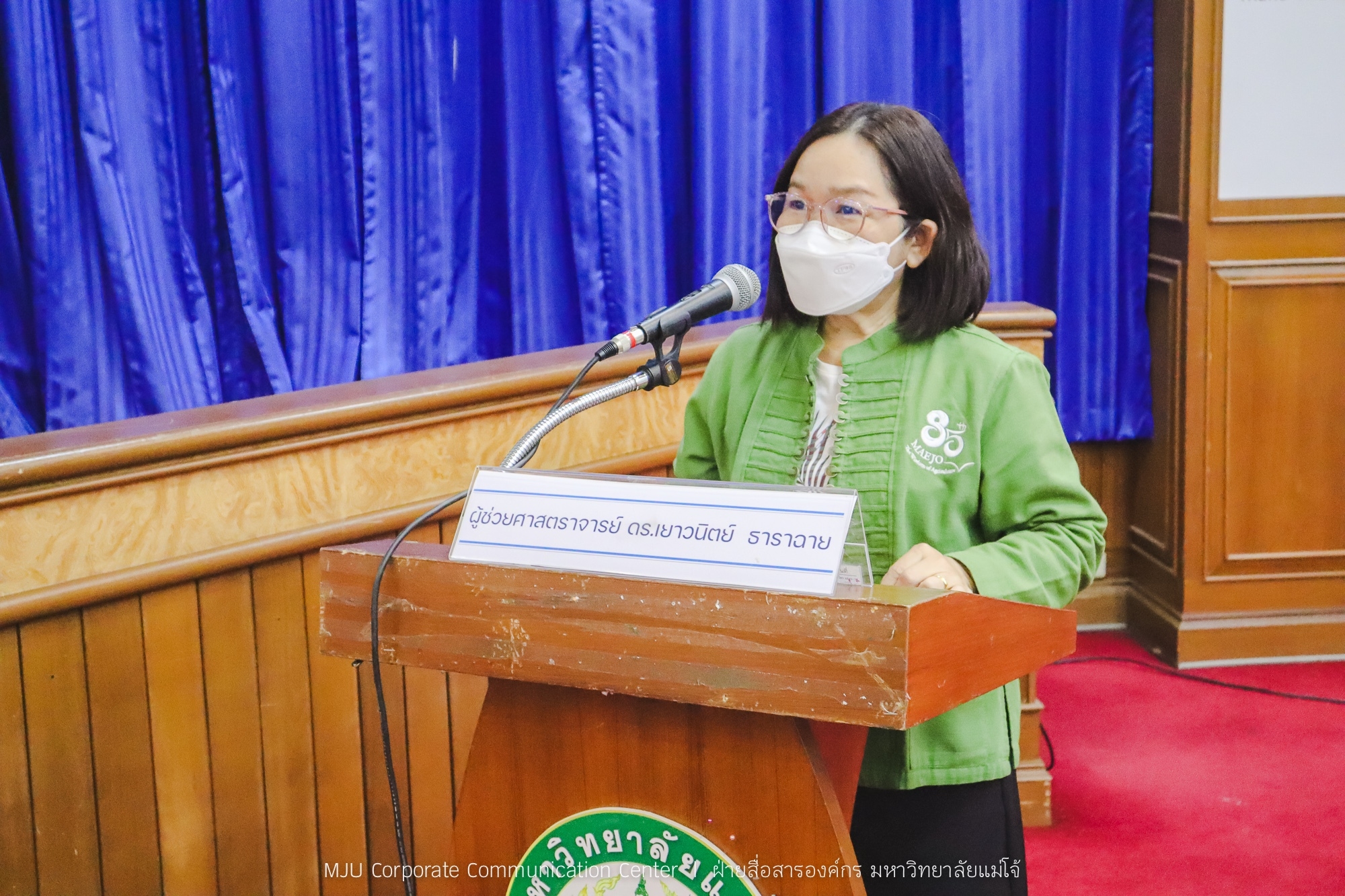 ผู้ช่วยศาสตราจารย์ ดร.ณัฐวุฒิ ดุษฎี รองอธิการบดี มหาวิทยาลัยแม่โจ้ เป็นประธานในพิธีเปิดกิจกรรมประชุมแลกเปลี่ยนเรียนรู้ “ชวนคนแม่โจ้ โชว์ไอเดีย กรีนสุดปัง” พร้อมทั้งให้แนวนโยบายด้าน Green University มหาวิทยาลัย โดยมี ผู้ช่วยศาสตราจารย์ ดร.เยาวนิตย์ ธาราฉาย กรรมการและเลขานุการ คณะกรรมการขับเคลื่อนยุทธศาสตร์การเป็นมหาวิทยาลัยสีเขียว กล่าวรายงาน พร้อมทั้งนำเสนอ “1 ทศวรรษ การดำเนินงาน Maejo Green University