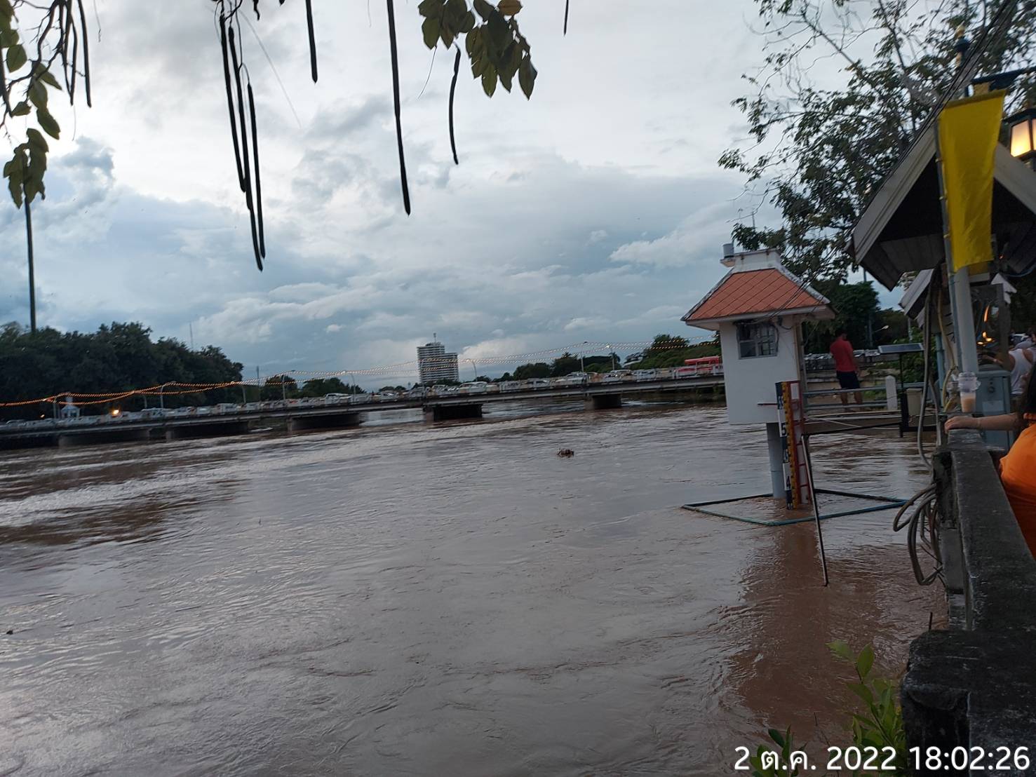วันที่ 2 ต.ค. 65 เวลา 18.00 น. ที่ศูนย์ปฏิบัติการน้ำอัจฉริยะ หรือ ห้อง SWOC สำนักงานชลประทานที่ 1 นายสุดชาย พรหมมลมาศ ผู้อำนวยการสำนักงานชลประทานเชียงใหม่ (ผส.ชป.1) กล่าวถึงสถานการณ์น้ำในแม่น้ำปิงว่า จากอิทธิพลของความกดอากาศต่ำโนรูซึ่งมีฝนตกในพื้นที่ จ.เชียงใหม่ ในปริมาณมากทั่วทั้งจังหวัด ทำให้ปริมาณน้ำในแม่น้ำปิงตลอดทั้งลำน้ำมีปริมาณมากเกือบเต็มตลิ่ง ด้วยปริมาณฝนที่ตกในพื้นที่ อ.เชียงดาว เวียงแหง มีปริมาณน้ำมาก คาดการณ์ว่าน้ำจะมีระดับที่ 3.70 เมตร หรือจุดวิกฤติของตัวเมืองเชียงใหม่ที่ จุดวัดน้ำ P>! ในเวลา 19.00 น. ปริมาณน้ำที่คาดการณ์ไว้จะอยู่ที่ 480-500 ลบ.ม.ต่อวินาที และจะมีระดับสูงสุดคาดการณ์ว่าจะมีน้ำล้นตลิ่งราว 15 เซนติเมตร ในช่วงเที่ยงคืนวันนี้