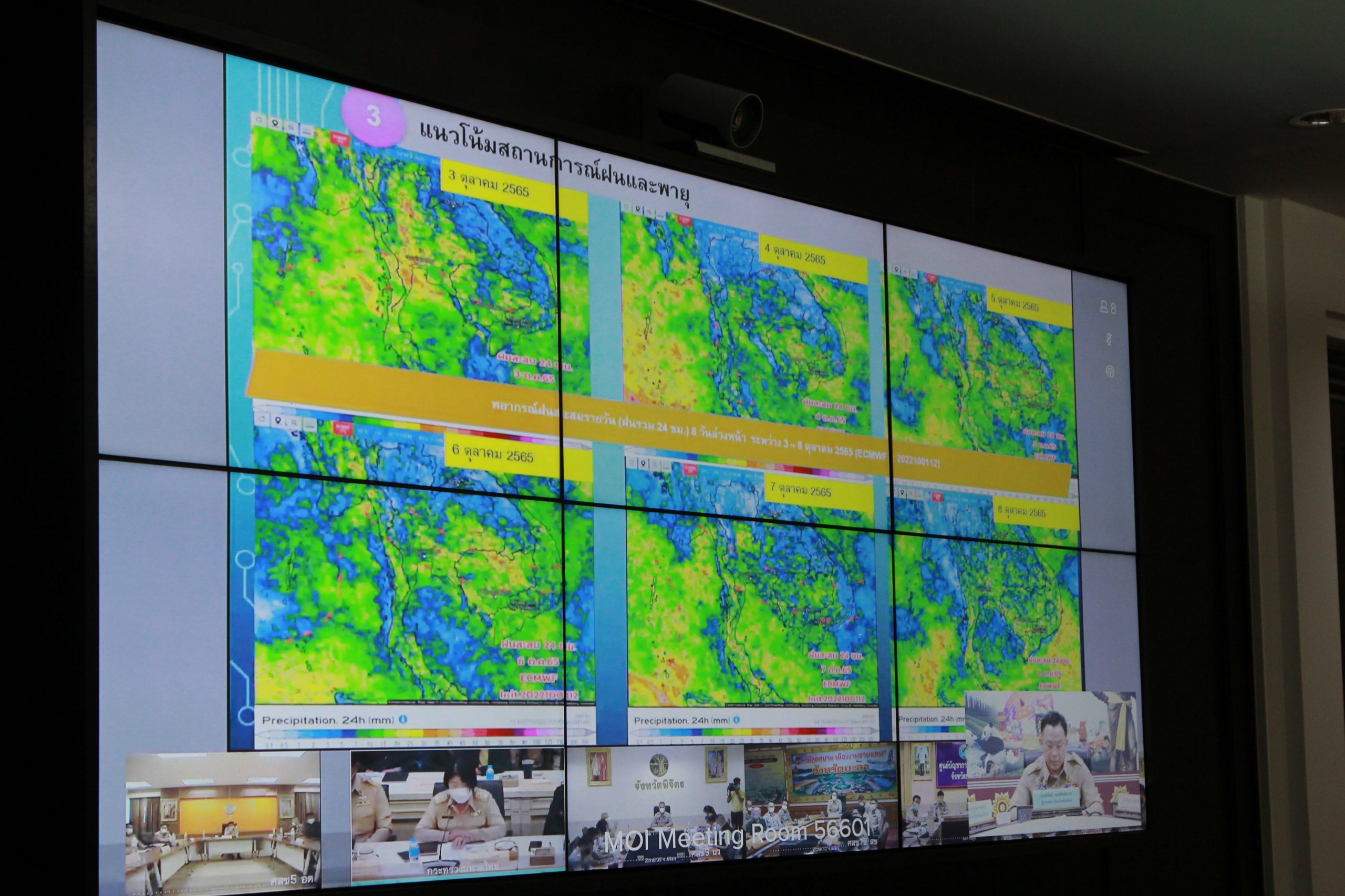 ในที่ประชุมได้รายงานว่า ขณะนี้ปริมาณฝนสะสมในปี2565 ตั้งแต่วันที่ 1 มกราคม จนถึงปัจจุบัน ปริมาณน้ำฝนทั้งประเทศสูงถึง 1549.1 มิลลิเมตร ซึ่งสูงกว่าค่าปกติถึงร้อยละ 22 ประกอบกับอิทธิพลของพายุโนรู ที่พัดผ่านเข้าในประเทศไทยในวันที่ 29-30 กันยายนที่ผ่านมา ส่งผลให้ประเทศไทยตอนบน มีฝนตกหนักต่อเนื่อง โดยคาดว่าในอีก1-2 วันประเทศไทยจะได้รับอิทธิพลจากร่องมรสุมที่พาดผ่านทางภาคเหนือ ภาคอีสานตอนบน และมรสุมตะวันตกเฉียงใต้ ที่ยังคงพัดปกคลุม ซึ่งจะทำให้ฝนยังคงจะตกต่อเนื่อง ทั้งนี้นายกรัฐมนตรี ได้เน้นย้ำให้ผู้ว่าราชการจังหวัดทุกจังหวัดเร่งรัดแก้ปัญหาสถานการณ์พร้อมทั้งเร่งช่วยเหลือประชาชนที่ได้รับผลกระทบโดยเร็ว