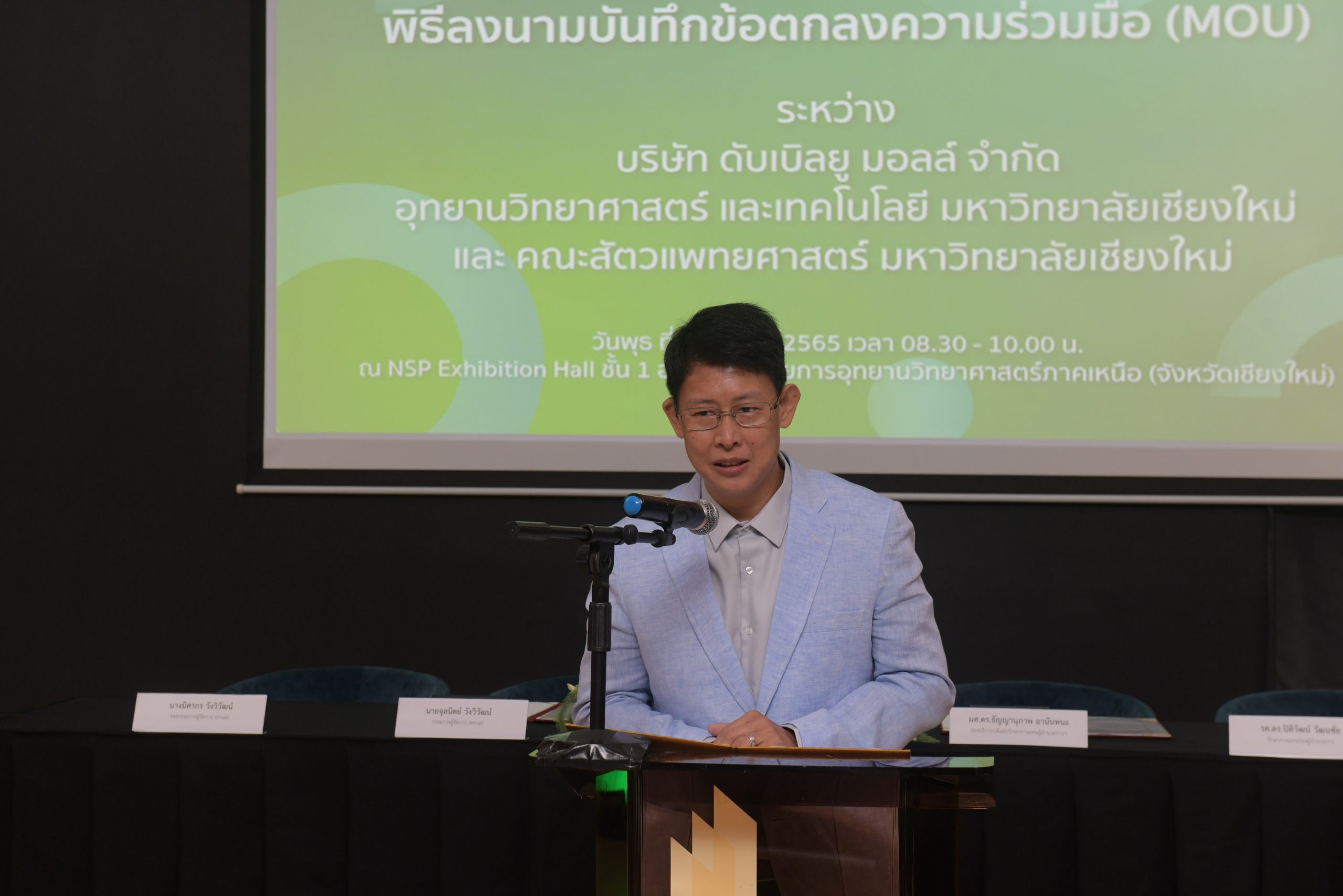 เมื่อวันที่ 5 ตุลาคม 2565 มหาวิทยาลัยเชียงใหม่เปิดพื้นที่ NSP Exhibition Hall อาคารอำนวยการอุทยานวิทยาศาสตร์ภาคเหนือ (จังหวัดเชียงใหม่) จัดพิธีลงนามบันทึกข้อตกลงความร่วมมือระหว่างบริษัท ดับเบิลยู มอลล์ จำกัด กับอุทยานวิทยาศาสตร์และเทคโนโลยี มหาวิทยาลัยเชียงใหม่ (STeP) และคณะสัตวแพทยศาสตร์ มหาวิทยาลัยเชียงใหม่ ในการสร้างความร่วมมือสนับสนุนการพัฒนาพื้นที่เพื่อให้บริการทางวิชาการและ Co-working Space ในพื้นที่ W Mall Lifestyle Community แห่งใหม่ของจังหวัดเชียงใหม่ ในการนี้ ศาสตราจารย์ ดร.นพ.พงษ์รักษ์ ศรีบัณฑิตมงคล อธิการบดีมหาวิทยาลัยเชียงใหม่ ให้เกียรติเป็นสักขีพยานในพิธี โดยเวลา 09.00 น. ผศ.ดร. ธัญญานุภาพ อานันทนะ รองอธิการบดีมหาวิทยาลัยเชียงใหม่ และรักษาการแทนผู้อำนวยการอุทยานวิทยาศาสตร์และเทคโนโลยี มหาวิทยาลัยเชียงใหม่ ร่วมลงนามบันทึกข้อตกลงความร่วมมือพร้อมด้วยนายจุลนิตย์ วังวิวัฒน์ กรรมการผู้จัดการ บจก. ดับเบิลยู มอลล์ จากนั้น เวลา 09.30 น. บจก. ดับเบิลยู มอลล์ ร่วมลงนามบันทึกข้อตกลงความร่วมมือกับคณะสัตวแพทยศาสตร์ มหาวิทยาลัยเชียงใหม่ โดยมีศาสตราจารย์ นายสัตวแพทย์ ดร.กรกฎ งานวงศ์พาณิชย์ คณบดี คณะสัตวแพทยศาสตร์ มหาวิทยาลัยเชียงใหม่ เป็นผู้ร่วมลงนาม