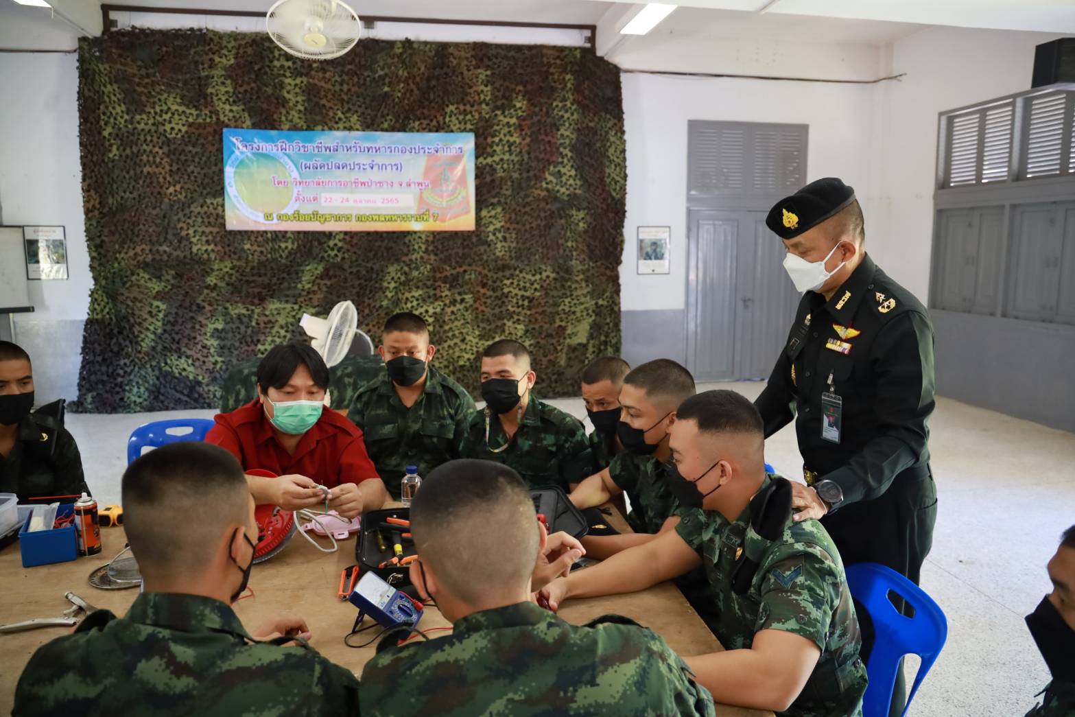 สำหรับการอบรมครั้งนี้มีการอบรม 2 หลักสูตร ได้แก่ หลักสูตรงานซ่อมพัดลมไฟฟ้า และหลักสูตรงานซ่อมมุ้งลวด ซึ่งจะเห็นได้ว่ากำลังพลสามารถนำวิชาเหล่านั้ไปประกอบอาขีพเสริมเมื่อกลับไปอยู่ที่บ้านควบคู่กับการประกอบอาชีพหลักได้ ทั้งนี้ ผู้บัญชาการกองพลทหารราบที่ 7 ได้ให้ความสำคัญกับโครงการดังกล่าว โดยมอบหมายให้รอง เสธ.พล.ร.7 เป็นผู้แทนมอบวุฒิบัตรการฝึกอบรมวิชาชีพสำหรับทหารกองประจำการ ในครั้งนี้ด้วย