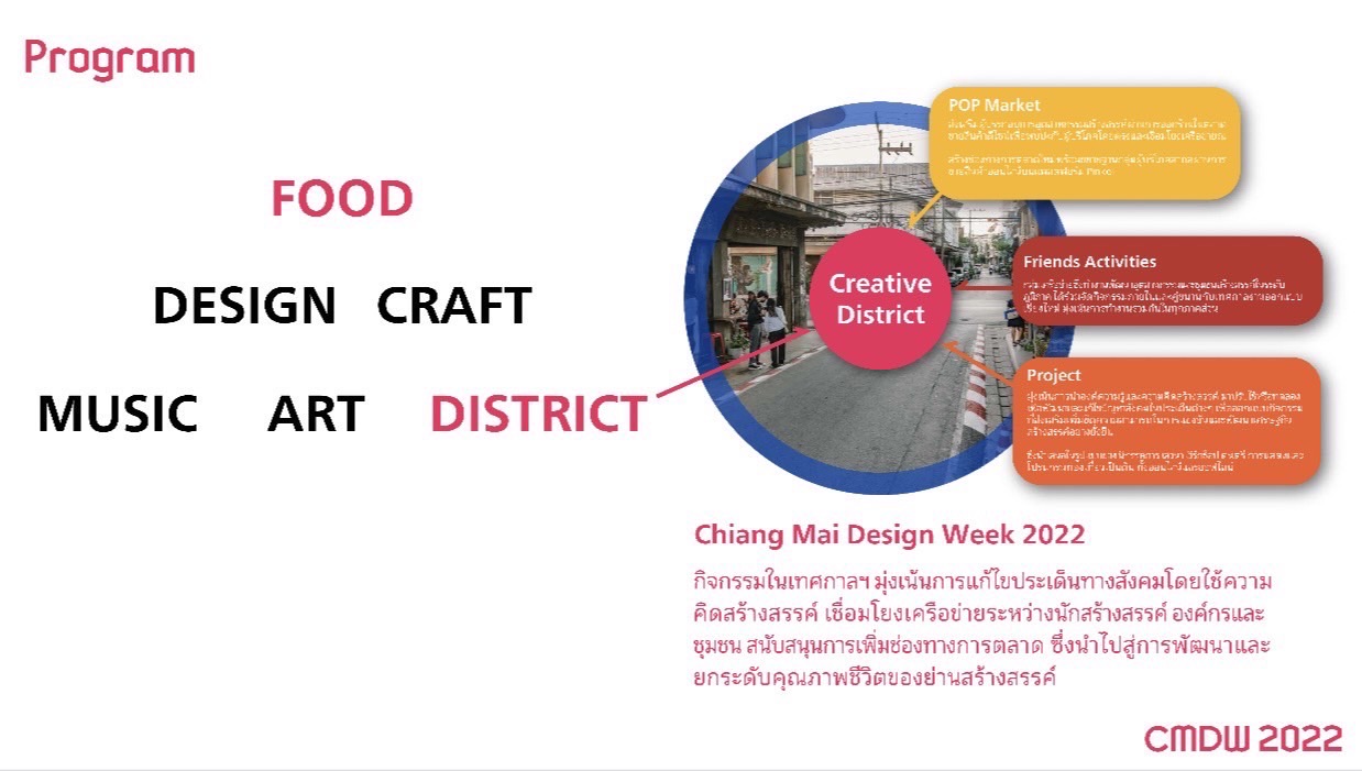 วันที่ (15 พ.ย 65) นางสาวอิ่มหทัย กันจินะ ผู้แทนสำนักงานส่งเสริมเศรษฐกิจสร้างสรรค์ เปิดเผยในการแถลงข่าวสื่อมวนชนประจำสัปดาห์จังหวัดเชียงใหม่ ว่า สำนักงานส่งเสริมเศรษฐกิจสร้างสรรค์ เตรียมจัดเทศกาลงานออกแบบเชียงใหม่ หรือ Chiang Mai Design Week ภายใต้แนวคิด “local rise-ation สร้างสรรค์ ท้องถิ่น เติบโต” ระหว่างวันที่ 3-11 ธันวาคม 2565 นี้ เพื่อส่งเสริมธุรกิจและความคิดสร้างสรรค์ พร้อมขับเคลื่อนเศรษฐกิจของประเทศให้ก้าวไกลและมีคุณภาพระดับสากล