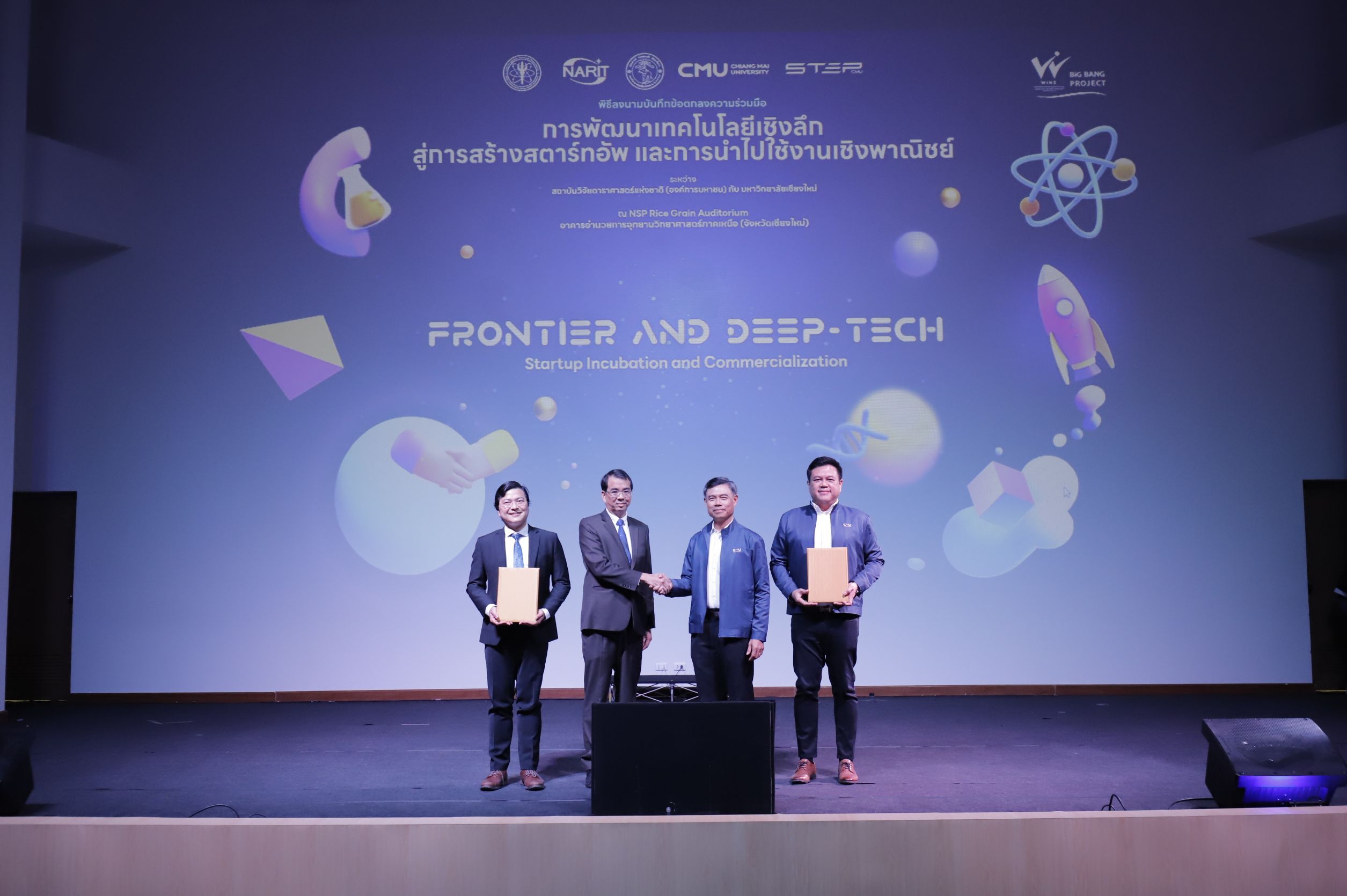 มหาวิทยาลัยเชียงใหม่ จับมือ สถาบันวิจัยดาราศาสตร์แห่งชาติ (องค์การมหาชน) ลงนามบันทึกข้อตกลงความร่วมมือ เตรียมปั้นธุรกิจนวัตกรรม Deep Tech Startup ด้วยองค์ความรู้ เทคโนโลยี วิศวกรรมขั้นสูง ร่วมกันพัฒนาพร้อมต่อยอดเทคโนโลยีชั้นแนวหน้าและเทคโนโลยีเชิงลึก (Frontier and Deep Tech) ทางดาราศาสตร์มาประยุกต์ใช้ในเชิงพาณิชย์ด้านอุตสาหกรรมการผลิตชิ้นส่วนวิศวกรรม ที่มีความแม่นยำสูง การแพทย์ และเทคโนโลยีแห่งอนาคต