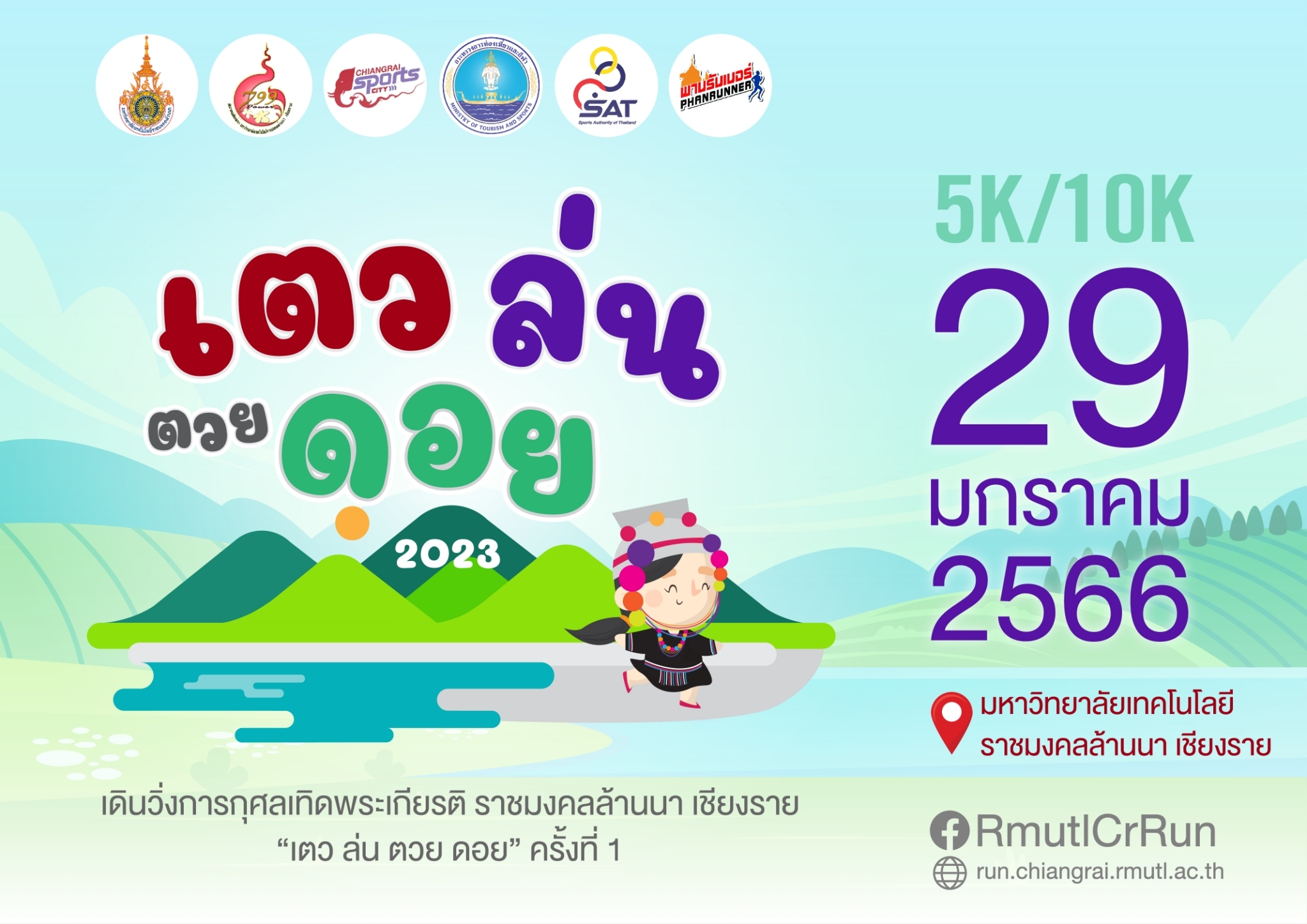 มหาวิทยาลัยเทคโนโลยีราชมงคลล้านนา เชียงราย ขอเชิญผู้ที่สนใจเข้าร่วมงานเดินวิ่งการกุศลเทิดพระเกียรติ ราชมงคลล้านนา เชียงราย เตว ล่น ตวย ดอย ครั้งที่ 1