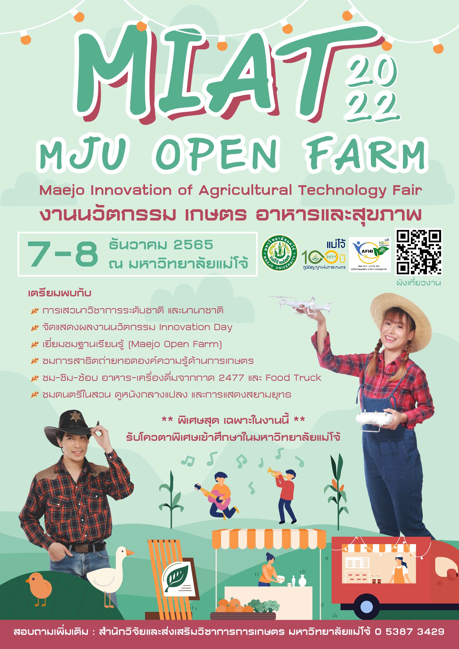 เชิญเที่ยว งาน MIAT 2022(Maejo Innovation of Agricultural Technology Fair and Open Farm 2022) “นวัตกรรม เกษตร อาหารและสุขภาพ และเปิดฟาร์ม 2022”