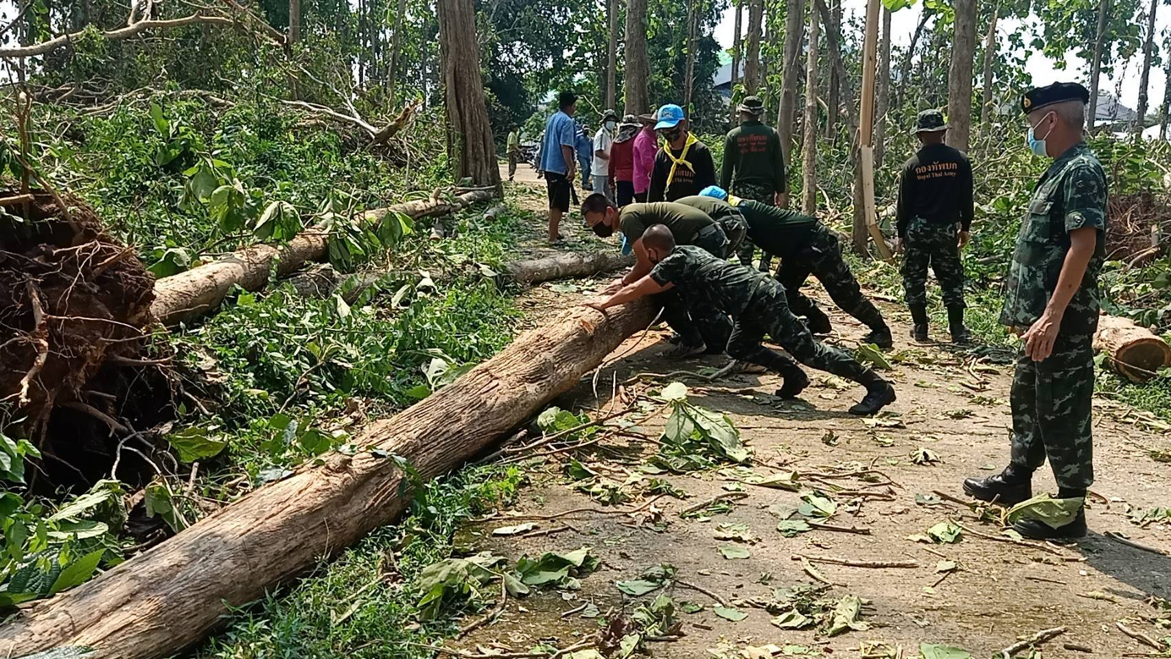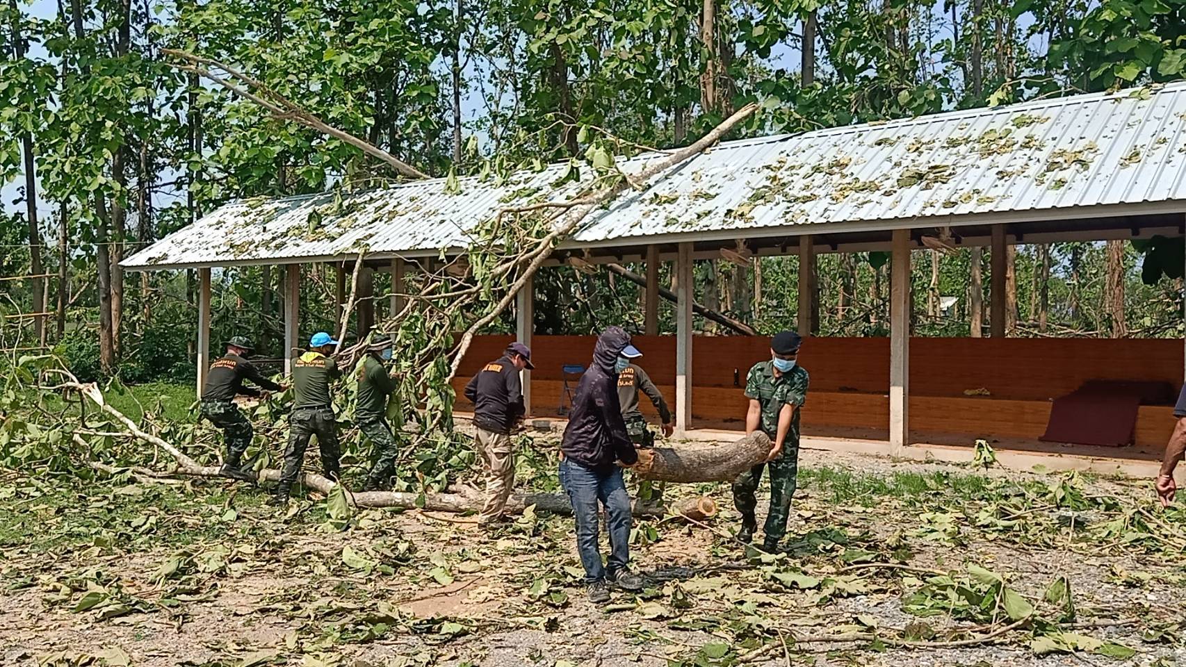 ศูนย์บรรเทาสาธารณภัยมณฑลทหารบกที่ 38 ได้ซ่อมแซมหลังคาบ้านของผู้ประสบภัย ตัดต้นไม้ที่โค่นล้มทับกีดขวางบริเวณบ้านพักอาศัย และขนย้ายสิ่งของที่ไม่จำเป็นออกจากพื้นที่ประสบภัย โดยบูรณาการกับฝ่ายปกครองอำเภอเวียงสา ผู้นำหมู่บ้าน ผู้นำชุมชน พร้อมให้การสนับสนุนในการฟื้นฟูซ่อมแซมบ้านเรือนประชาชนให้แล้วเสร็จ