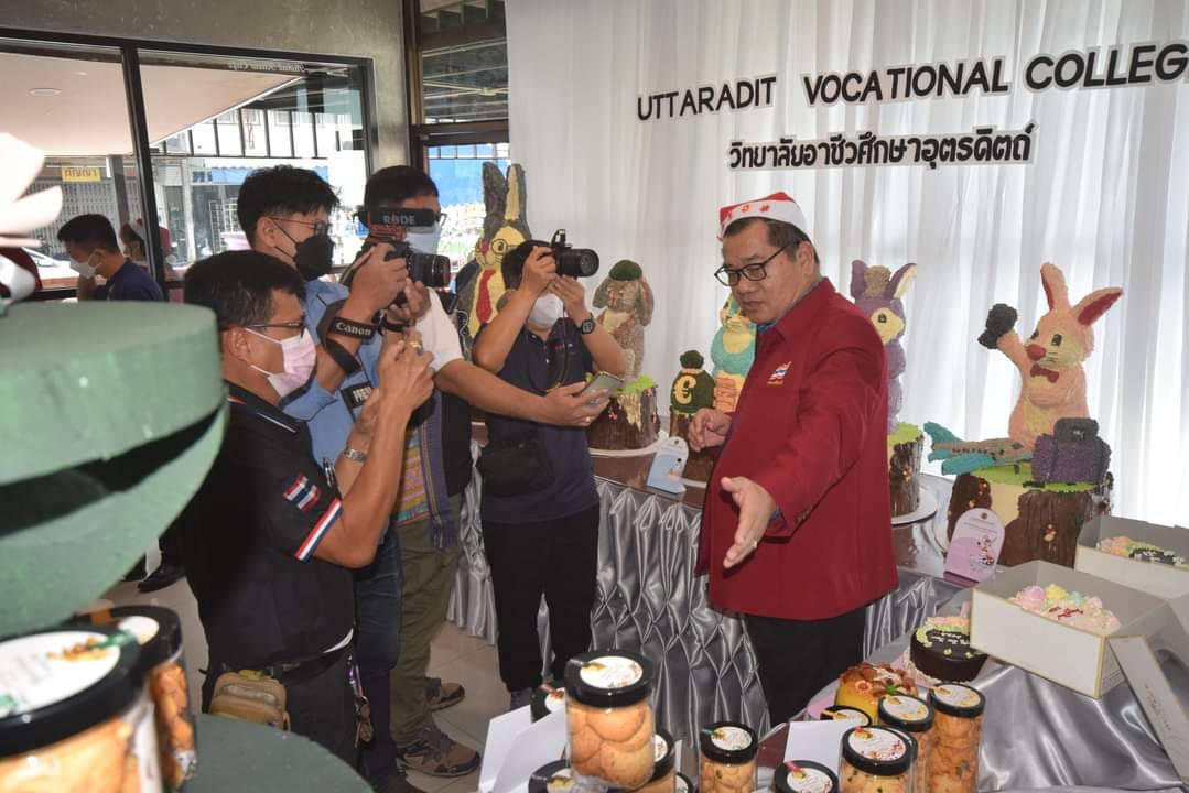 ดร.บัณฑิตย์ สิงห์ช่างชัย ผู้อำนวยการวิทยาลัยอาชีวศึกษาอุตรดิตถ์  เปิดเผยว่า ระหว่างวันที่ 23 ธันวาคม 2565 ถึงวันที่ 1 มกราคม 2566 ได้จัดทำโครงการเรียนรู้สู่ทักษะปฏิบัติ คิดเป็น ทำเป็น บริหารเป็น โดยผลิตและจำหน่ายเค้กและ ขนมคุกกี้  ต้อนรับปีใหม่ ประจำปีงบประมาณ  2566  ซึ่งมีวัตถุประสงค์เพื่อให้การจัดการเรียนการสอนทักษะวิชาชีพ  สู่ทักษะการปฏิบัติจริงโดยเน้นผู้เรียนเป็นสำคัญ  สอดคล้องกับนโยบายของสำนักงานคณะกรรมการการอาชีวศึกษา ในเรื่องการยกระดับคุณภาพผู้เรียน  โดยปฏิรูปการเรียนการสอนเพื่อให้เกิดการเรียนรู้สู่ทักษะปฏิบัติ  คิดเป็น  ทำเป็น  บริหารจัดการเป็น วิทยาลัยอาชีวศึกษาอุตรดิตถ์ จัดการเรียนการสอนสายอาชีพ ภายใต้ปรัชญาที่ว่า “คุณธรรม นำทาง เสริมสร้างปัญญา พัฒนาอาชีพ”  โดยส่งเสริมให้ผู้เรียนมีประสบการณ์เพื่อสร้างอาชีพอิสระ บูรณาการ การจัดการเรียนการสอนเข้ากับโครงการในทุกสาขาวิชา เพื่อให้มีส่วนร่วมในการปฏิบัติงานที่เกี่ยวข้องกับสาขาวิชาชีพที่เรียน ประกอบด้วย สาขาวิชาคหกรรม เป็นฝ่ายผลิต  สาขาวิชาการบัญชี เป็นฝ่ายการเงิน  สาขาวิชาการตลาดและการจัดการทั่วไป เป็นฝ่ายการตลาดและส่งเสริมการขาย  แผนกวิชาสามัญ เป็นฝ่ายเก็บรักษาเค้กและจ่ายเค้กตามใบสั่งจอง  สาขาวิชาศิลปกรรม เป็นฝ่ายออกแบบบรรจุภัณฑ์และเขียนตัวอักษร  สาขาวิชาการเลขานุการและการจัดการสำนักงาน เป็นฝ่ายบรรจุภัณฑ์เค้ก  และสาขาวิชาคอมพิวเตอร์ธุรกิจ เป็นฝ่ายบันทึกข้อมูล  ซึ่งเป็นการบูรณาการในวิชาชีพเพื่อการบริหารจัดการอย่างแท้จริง ซึ่งการจัดทำโครงการนี้ นักเรียนนักศึกษา มีรายได้ระหว่างเรียน และวิทยาลัยนำกำไรที่ได้จากการจำหน่ายมาใช้ในการพัฒนาสถานศึกษา ต่อไป