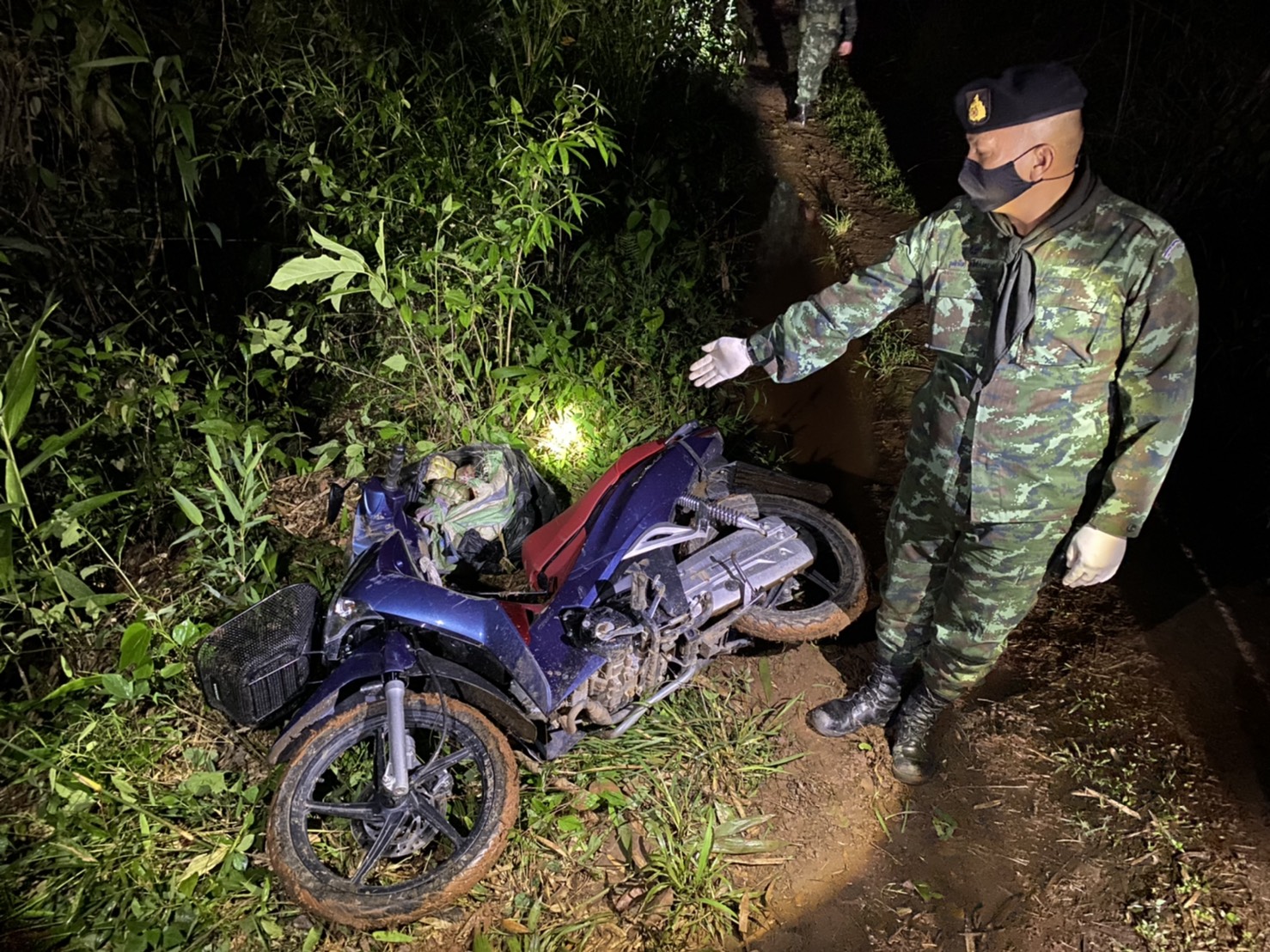 จากนั้นกองบังคับการควบคุมที่ 2 หน่วยเฉพาะกิจกรมทหารม้าที่ 5 และหน่วยงานที่เกี่ยวข้องได้ตรวจสอบ รถจักรยานยนต์ยี่ห้อ ฮอนด้า เวฟ 125 ไอ สีน้ำเงิน ไม่มีแผ่นป้ายทะเบียน ที่ล้มอยู่ โดยพบกระสอบสีขาว ภายใน บรรจุยาเสพติดให้โทษประเภท 2 (ฝิ่นดิบ) จำนวน 24 ก้อน และตรวจพบยาเสพติดให้โทษประเภท 1 (เฮโรอีน) จำนวน 2 ถุง และตรวจค้นบริเวณใต้เบาะรถจักรยานยนต์คันดังกล่าว พบยาเสพติดให้โทษประเภท 2 (ฝิ่นดิบ) อีกจำนวน 7 ก้อน รวมฝิ่นดิบ จำนวน 31 ก้อน (น้ำหนักแบ่งเป็น 1.7 กิโลกรัม จำนวน 9 ก้อน และ น้ำหนัก 1.6 กิโลกรัม จำนวน 22 ก้อน) รวมน้ำหนักฝิ่นดิบ จำนวน 50.5 กิโลกรัม และเฮโรอีน จำนวน 2 ถุง น้ำหนัก 0.5 กิโลกรัม  ปัจจุบันหน่วยได้ยึดของกลางดังกล่าวไว้เพื่อตรวจสอบ และส่งมอบให้ สภ.ไชยปราการ เพื่อดำเนินการสืบสวนหาผู้กระทำผิดต่อไป