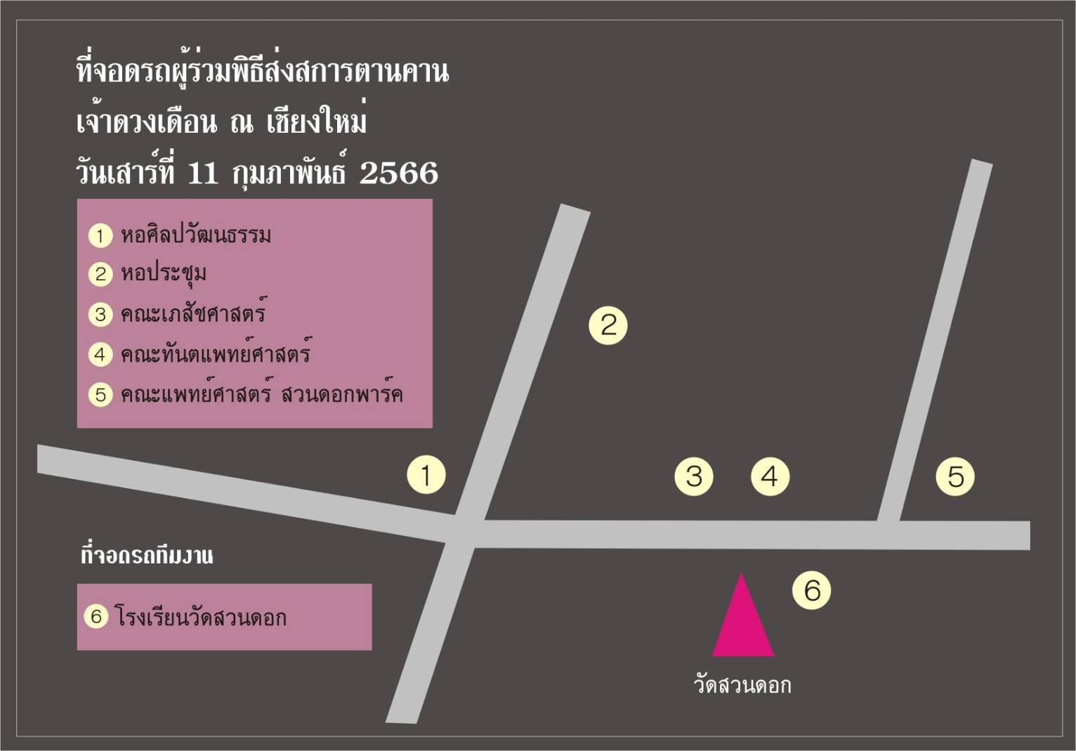 ทั้งนี้ จึงขอเชิญชวนชาวเชียงใหม่ ร่วมใจแต่งกายด้วยชุดสีขาวเข้าร่วมพิธี เพื่อส่งเจ้าดวงเดือน ณ เชียงใหม่ อย่างพร้อมเพรียงกันในวันเสาร์ที่ 11 กุมภาพันธ์ 2566 โดยจะมีการจัดสถานที่จอดรถเพื่อรองรับผู้มาร่วมงานจำนวนมาก พร้อมจัดรถรับ-ส่ง และวางแผนด้านการจราจร เพื่อให้มีผลกระทบกับการจราจรในภาพรวมของเมืองเชียงใหม่ให้น้อยที่สุด ทั้งนี้ ประชาชนสามารถรับชมรายละเอียดการจัดงานได้ที่เพจ Facebook : เจ้าดวงเดือน ณ เชียงใหม่ และ ที่เว็บไซต์ www.chaoduangduen.com