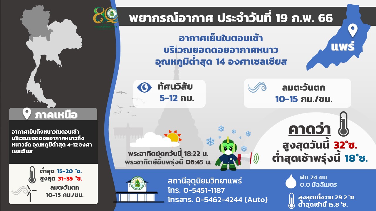พยากรณ์อากาศประจำวันอาทิตย์ที่ ๑๙ กุมภาพันธ์ พ.ศ. ๒๕๖๖