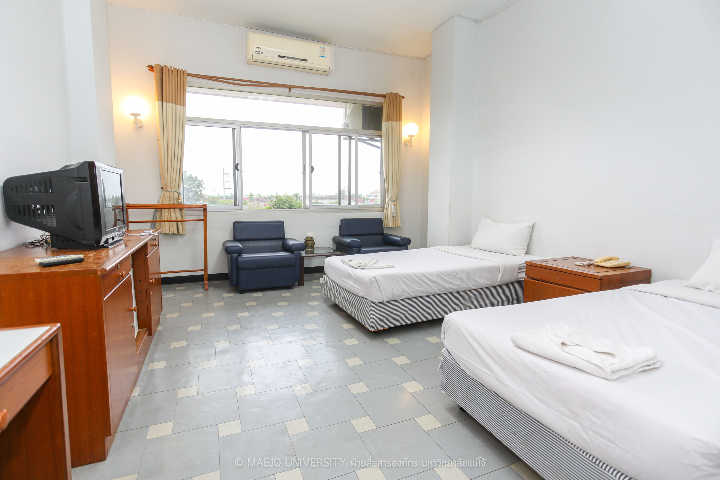 สำหรับการดำเนินการจัดตั้งโรงพยาบาลสนามมหาวิทยาลัย ส่วนขยาย (สถานพักฟื้นและดูแลสุขภาพ มหาวิทยาลัยแม่โจ้ : MJU Well-beling Hospitech) เพื่อรองรับการรักษาผู้สัมผัสเชื้อไวรัสโคโรนา 2019 (COVID-19) ที่ผ่านการคัดกรองจากโรงพยาบาลสนามจังหวัดเชียงใหม่ ซึ่งจะเน้นผู้สัมผัสเชื้อในกลุ่มนักศึกษาและบุคลากรของมหาวิทยาลัยแม่โจ้ กลุ่มผู้พิการตามความเห็นของแพทย์โรงพยาบาลสันทราย กลุ่มผู้สัมผัสเชื้อทั้งครอบครัว หรือเด็กเล็กที่ต้องมีผู้ติดตามดูแล ตามความเห็นแพทย์โรงพยาบาลสันทราย และกลุ่มผู้สัมผัสเชื้อตามข้อวินิจฉัยของแพทย์ โดยโรงพยาบาลสันทราย เป็นผู้วางระบบบริหารจัดการ และปฏิบัติงานด้านการแพทย์ ส่วนอำเภอสันทรายจะสนับสนุน ประสานงาน อำนวยความสะดวก ด้านปกครองท้องถิ่น ชุมชนในอำเภอสันทราย หน่วยงานรัฐที่เกี่ยวของ และมหาวิทยาลัยแม่โจ้เป็นผู้จัดเตรียมสถานที่ โดยใช้ห้องพักของศูนย์การศึกษาและฝึกอบรมนานาชาติ ซึ่งมีจำนวน 100 เตียง พร้อมทั้งสนับสนุนการบริหารจัดการ อำนวยความสะดวกในการปฏิบัติงานของแพทย์ให้เป็นไปอย่างมีประสิทธิภาพ