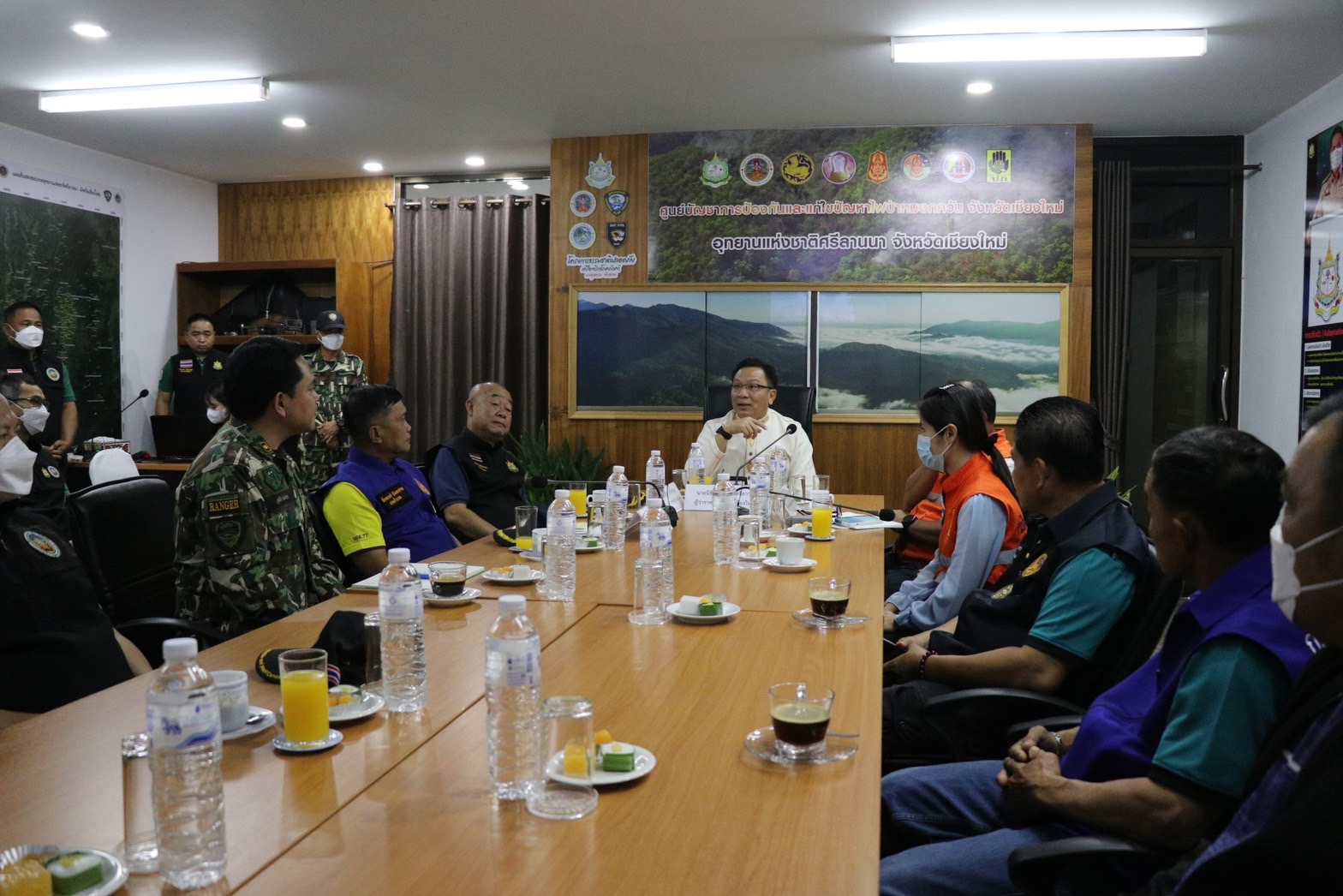 ขณะที่ นายภูพิชิต ช่วยบำรุง หัวหน้าอุทยานแห่งชาติศรีลานนา กล่าวว่า อุทยานแห่งชาติศรีลานนา มีพื้นที่รับผิดชอบกว่า 9 แสนไร่ ครอบคลุมพื้นที่อำเภอพร้าว แม่แตง และเชียงดาว โดยร้อยละ 70 ของพื้นที่เป็นป่าผลัดใบ ซึ่งมีผลต่อการเกิดเชื้อเพลิง โดยเฉพาะในปีนี้ที่มีปริมาณเชื้อเพลิงสะสมเป็นจำนวนมากตั้งแต่ปี 2564-2565 อุทยานแห่งชาติศรีลานนาจึงได้บูรณาการการทำงานกับหน่วยงานในสังกัดกรมอุทยานแห่งชาติ สัตว์ป่า และพันธุ์พืชอย่างเต็มกำลัง เพื่อดูแลพื้นที่ครอบคลุมทุกหมู่บ้าน ซึ่งสถิติการเกิดจุดความร้อนในพื้นที่อุทยานแห่งชาติศรีลานนา ตั้งแต่ต้นปีจนถึงปัจจุบัน มีจุดความร้อนเกิดขึ้น 176 จุด อย่างไรก็ตาม ยังคงมีการเฝ้าระวังอย่างต่อเนื่อง ทั้งการเก็บใบไม้ตามโครงการ “ชิงเก็บลดเผา” และการตั้งจุดเฝ้าระวังไฟ ซึ่งมีอาสาสมัครของชุมชนร่วมเฝ้าระวังและออกตรวจลาดตระเวนไฟในพื้นที่ ทั้งบ้านหลักและหย่อมบ้าน นอกจากนี้ ยังมีเครือข่ายฝ่ายปกครองเข้ามาร่วมกันปฏิบัติงานในพื้นที่ และเข้าเผชิญเหตุซึ่งเป็นไปด้วยความยากลำบาก เนื่องจากต้องเดินเท้าและนั่งเรือเพื่อเข้าพื้นที่