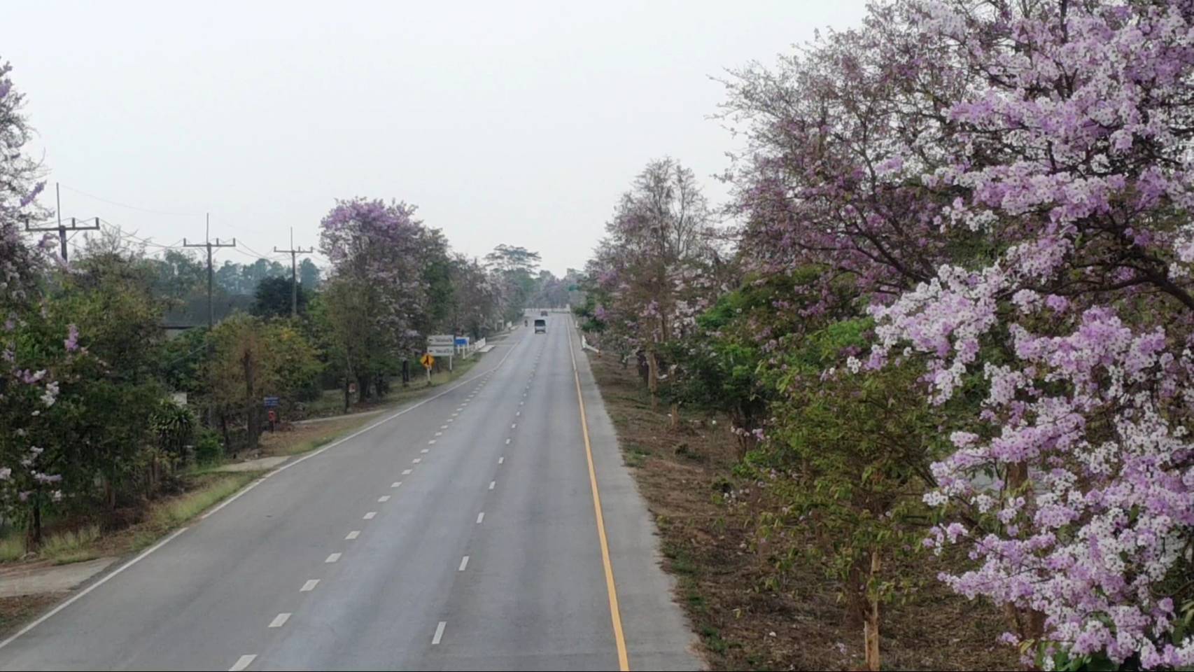 พะเยา ถนนดอกตะแบกบานสะพรั่งรับลมร้อนสองฝั่งถนนพะเยา-เชียงราย