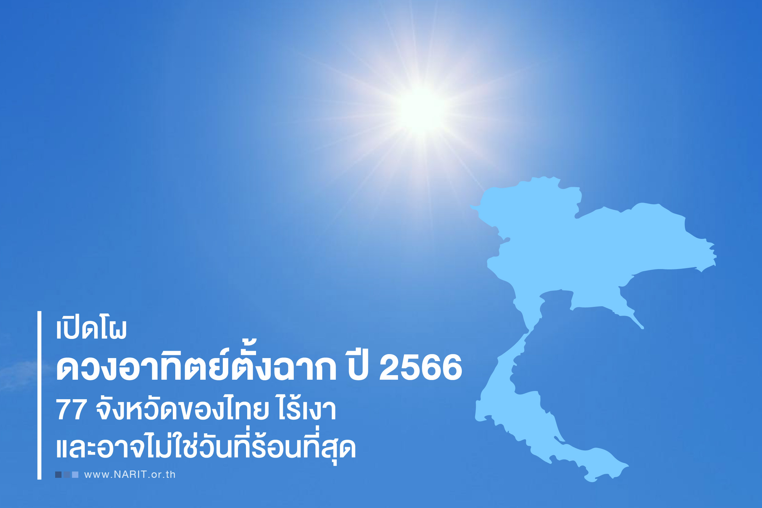 สถาบันวิจัยดาราศาสตร์แห่งชาติ (องค์การมหาชน) (สดร.) กระทรวงการอุดมศึกษา วิทยาศาสตร์ วิจัย และนวัตกรรม (อว.) เปิดโผดวงอาทิตย์ตั้งฉากกับ 77 จังหวัดของประเทศไทยครั้งแรกของปี เริ่มจากใต้สุดที่ อ. เบตง จ. ยะลา วันที่ 4 เมษายน และสิ้นสุดที่ อ. แม่สาย จ. เชียงราย วันที่ 22 พฤษภาคม หากยืนกลางแดดในช่วงที่ดวงอาทิตย์ตั้งฉาก เงาของร่างกายจะตกอยู่ใต้เท้าพอดีทำให้ดูเสมือน “ไร้เงา” ทั้งนี้อาจไม่ใช่วันที่ร้อนที่สุด ขึ้นอยู่กับหลายปัจจัย