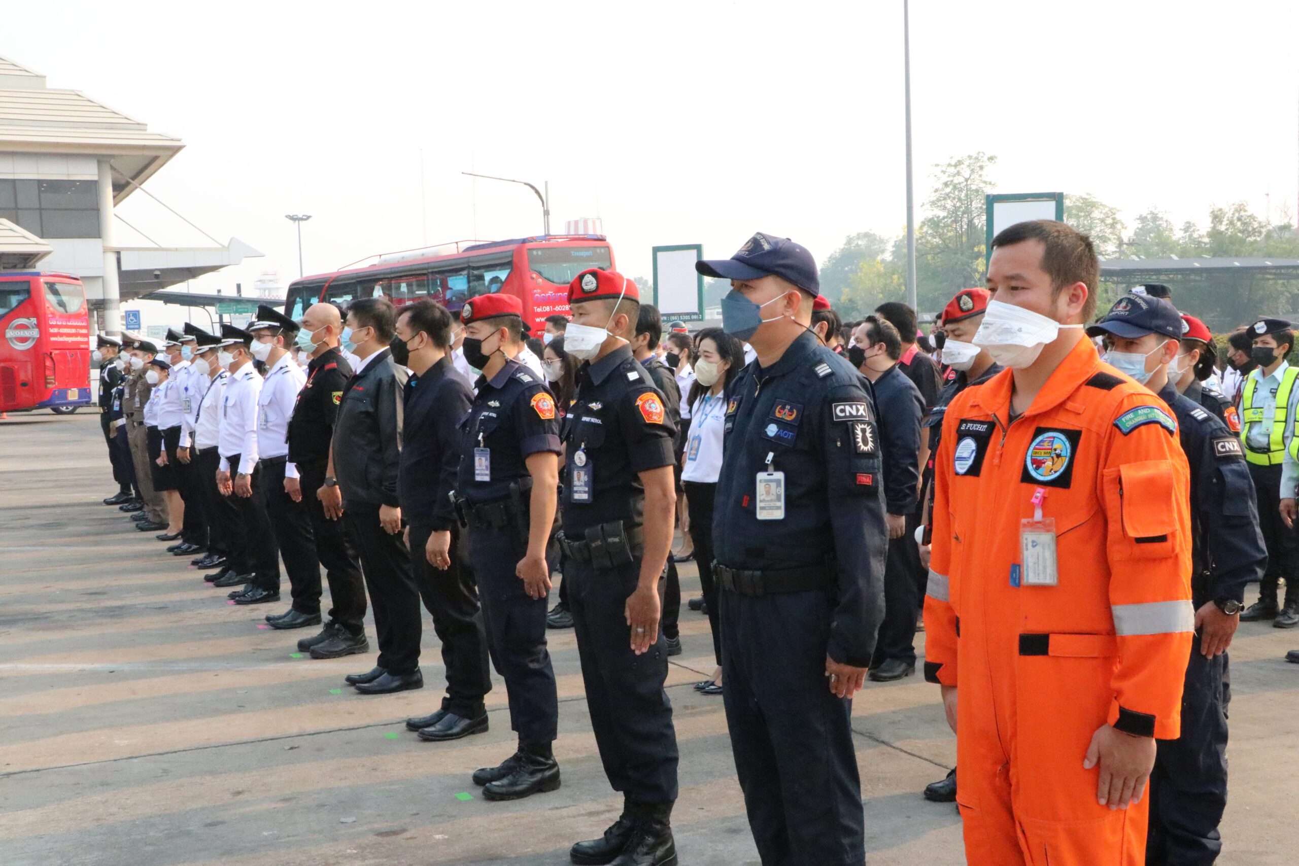 นายวิจิตต์ แก้วไทรเทียม ผู้อำนวยการท่าอากาศยานเชียงใหม่ เป็นประธานพิธีปล่อยแถวปฏิบัติการในการอำนวยความสะดวกและรักษาความปลอดภัยช่วงเทศกาลสงกรานต์ ณ บริเวณลานจอดรถบัสด้านทิศใต้ อาคารผู้โดยสารระหว่างประเทศ เพื่อเตรียมความพร้อมรองรับการเดินทางของประชาชนในช่วงเทศกาลสงกรานต์ ระหว่างวันที่ 10-18 เมษายน 2566 ให้เกิดความสะดวก รวดเร็ว ปลอดภัย ตามนโยบายของกระทรวงคมนาคม เนื่องจากในช่วงเทศกาลสงกรานต์มีวันหยุดติดต่อกันหลายวัน คาดว่าจะมีนักท่องเที่ยวและประชาชนเดินทางกลับภูมิลำเนาเป็นจำนวนมาก ซึ่งการปล่อยแถวดังกล่าวเป็นการบูรณาการร่วมกันของเจ้าหน้าที่ ด้านความมั่นคงที่ปฏิบัติงาน ณ ทชม. อาทิ ตำรวจภูธร ภูพิงคราชนิเวศน์ ตำรวจท่องเที่ยว ตำรวจตรวจคนเข้าเมือง ทหารจากมณฑลทหารบกที่ 33 กองบิน 41 รวมถึงหน่วยงานต่างๆ ที่เกี่ยวข้อง อาทิ ด่านศุลกากร สายการบิน ส่วนราชการและผู้ประกอบการ เพื่อร่วมกันดูแลความปลอดภัยและอำนวยความสะดวกแก่ผู้เดินทาง ขณะเดียวกันยังได้จัดตั้งจุดสรงน้ำพระ พร้อมจัดกิจกรรมสาธิตการตัดตุงไส้หมูบริเวณห้องโถงผู้โดยสาร ชั้น 1 อาคารผู้โดยสารภายในประเทศ เพื่อต้อนรับนักท่องเที่ยว ให้สัมผัสบรรยากาศสงกรานต์เชียงใหม่ ตั้งแต่เดินทางมาถึงสนามบิน